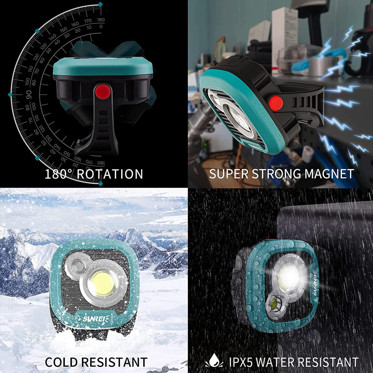 LED Rechargeable Magnetic Work Light SUNREI Mechanic Light Power Bank 180° Rotating,1500LM, 6 Modes,Magnetic&Hook, IPX5 Waterproof, Magnetic Flashlight for Camping, Car Repairing