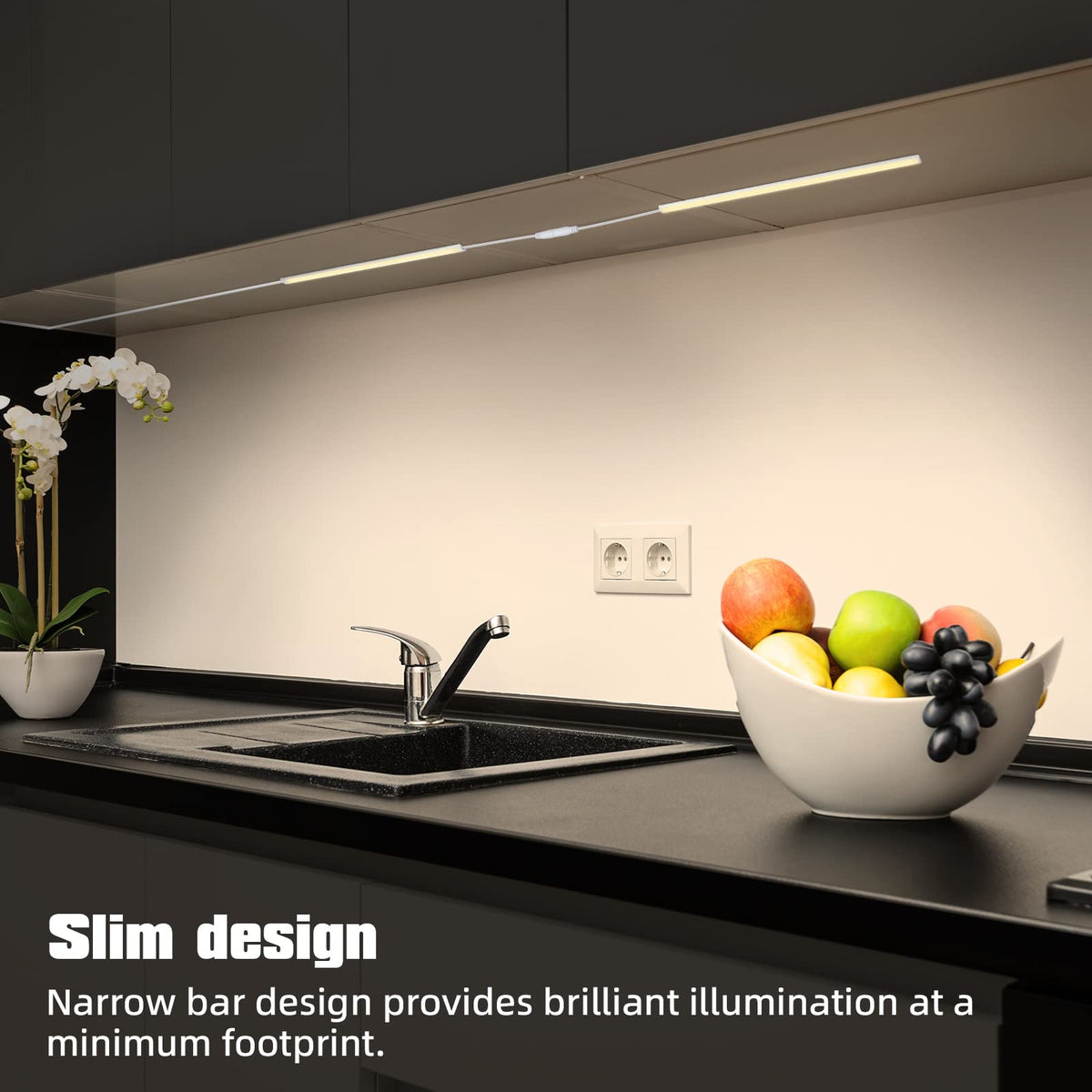 Q: How bright are the LED Under Cabinet Lights?A: Each light bar produces 400 lumens, with a total of 800 lumens for the kit. This brightness level is suitable for illuminating your kitchen, desk, or any other area where you need enhanced visibility.