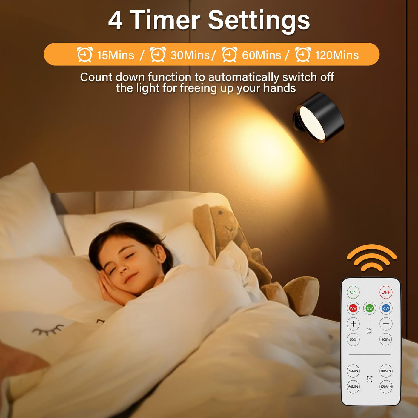 Led Wall Mounted Lights,Rechargeable Battery Operated Wall Sconce With Remote,3 Color Temperatures & Dimmable Magnetic 360 Rotat