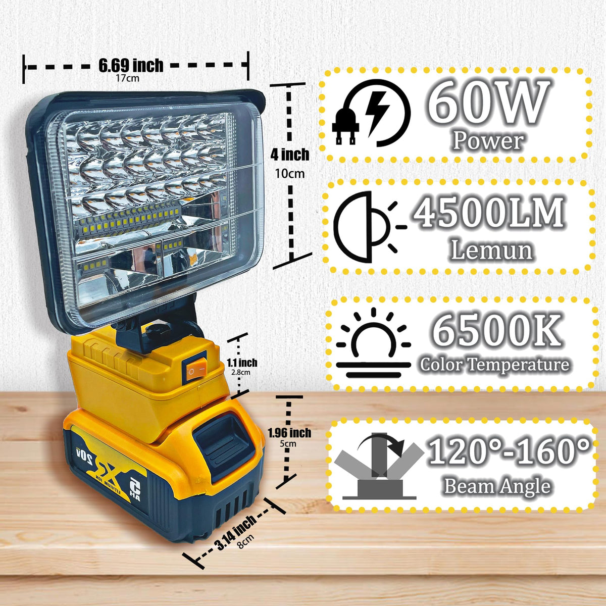 Led Work Light Cordless Handhelp For Dewalt 20V Battery,60W 4500Ml Led Portable Light,Protection Two Usb Charging Port For Outdo