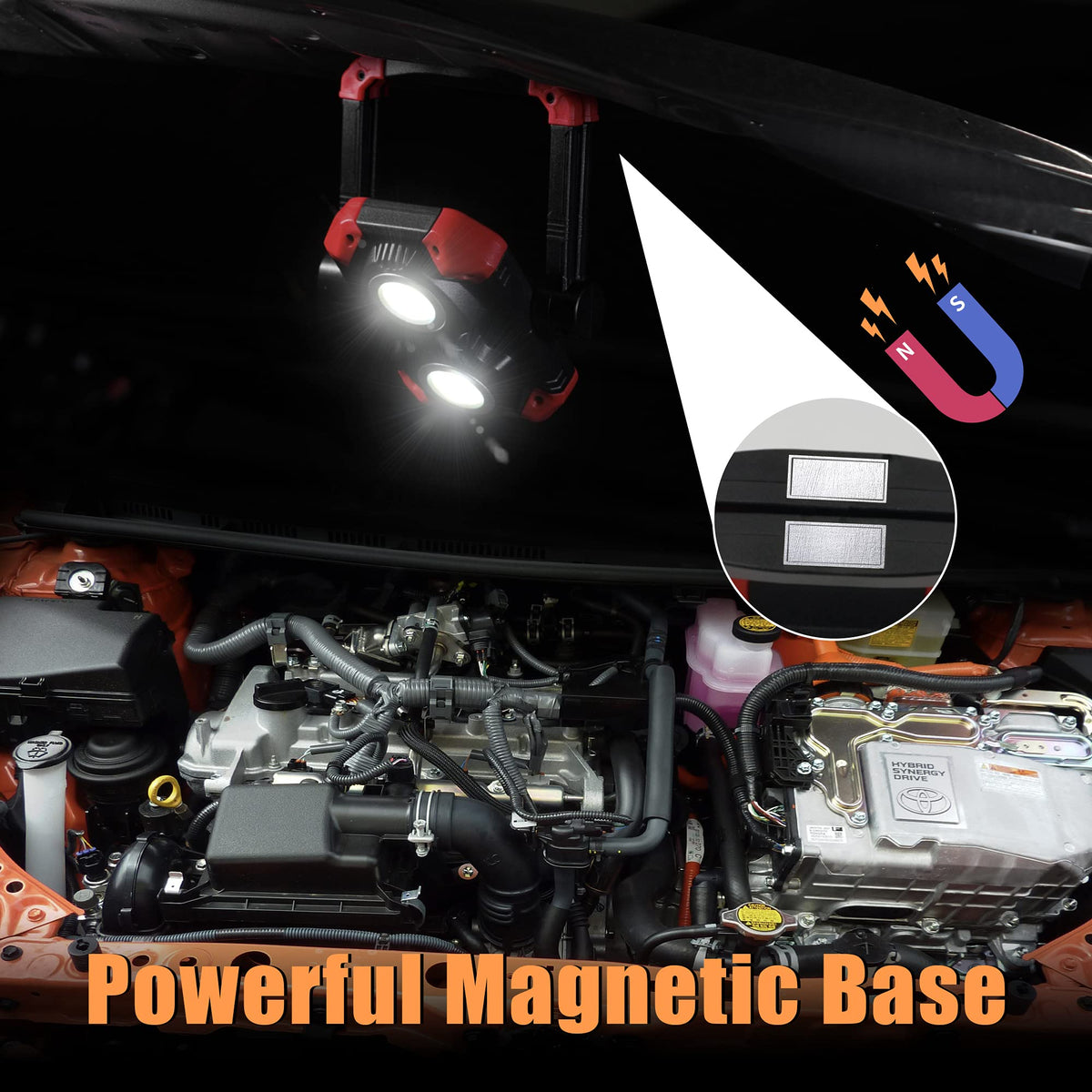 Led Work Light Rechargeable, 2 Cob 2500Lm Folding Portable Flood Light With Magnetic Base And 360