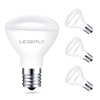 With superior materials and LEDs, the R14 LED bulb replaces 40W halogen bulb with only 4W, reducing energy usage significantly. Our R14 LED light bulbs last 25,000 hours around 30 times longer than normal incandescent lights, no need to change bulbs frequently. These R14 E17 LED bulbs are dimmable from 10% to 100%, they are hum-free and the bulbs provide instant bright light and no flickering, making this bulb perfect for entertainment cabinet lamps, armoire lamp, desk lamp, bed lamp, and track lighting in the kitchens, bedrooms, study rooms, etc.. Specifications: ?CRI: 80+ ?Wattage: 4W=40W. Voltage: 120V AC. Luminous flux: 400LM Base type: standard E26 base. Color temperature: Warm white 2700K. Special features: dimmable, instantaneous.