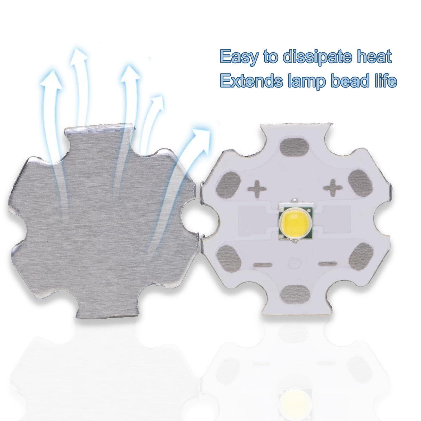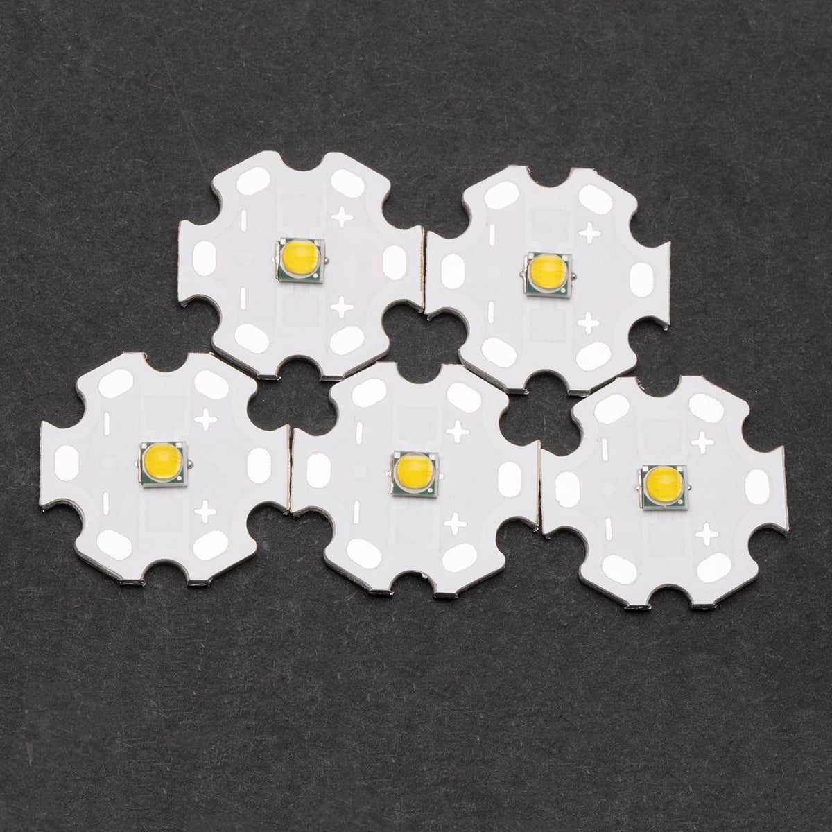 Ledguhon 5Pcs 3W White 3535 Smd High Power Led Chip With Aluminum Plate 20Mm Star Pcb Base Heat Sink Led Chip Replacement(120Deg