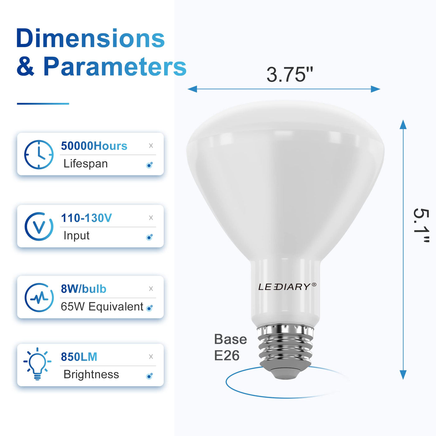 LEDIARY 12-Pack BR30 LED Recessed Light Bulbs, ETL Listed LED Bulb for Cans, Dimmable, 5000K Daylight, 8W=65W, 850LM Indoor Flood Lights - E26 Medium Base