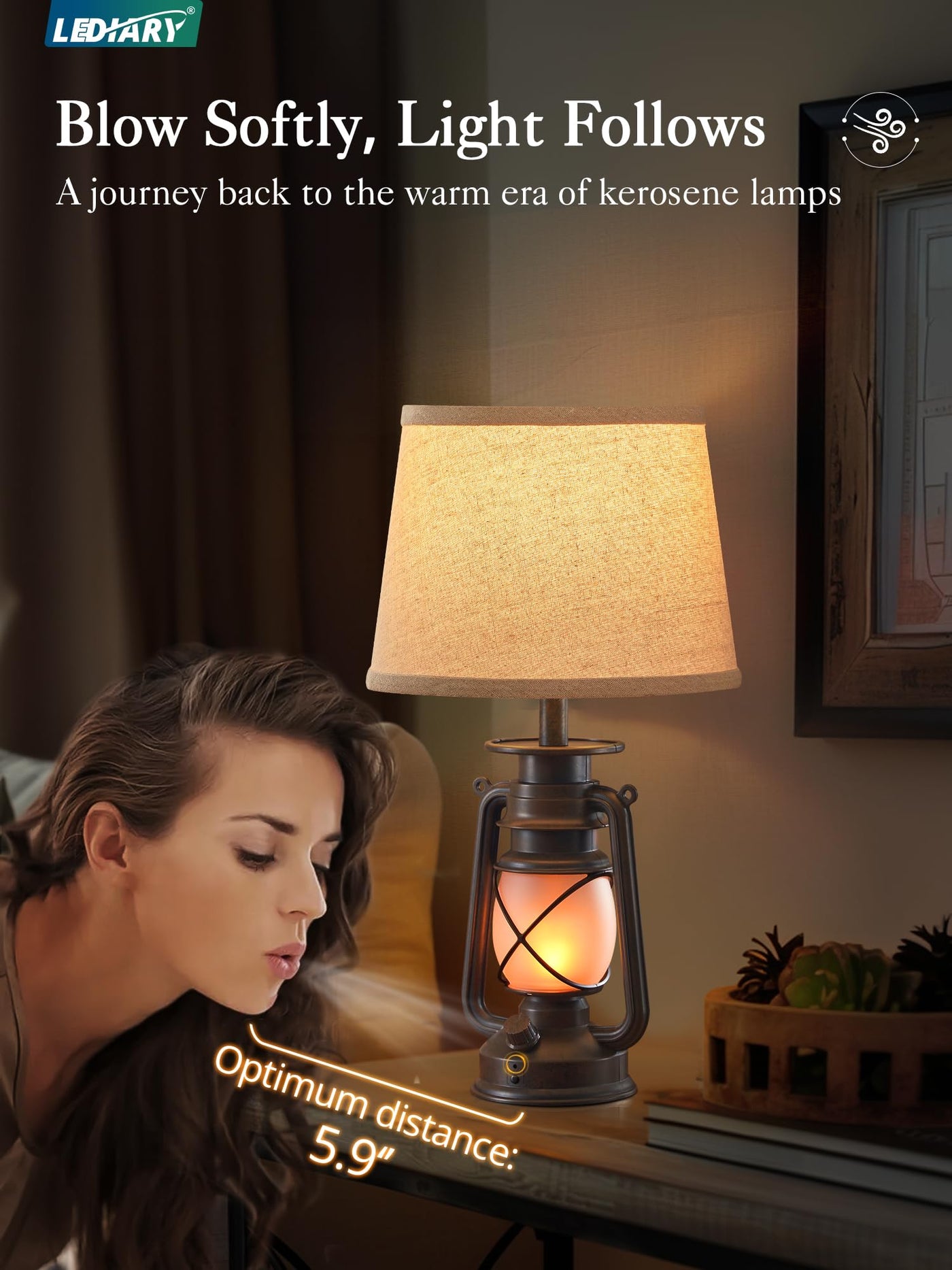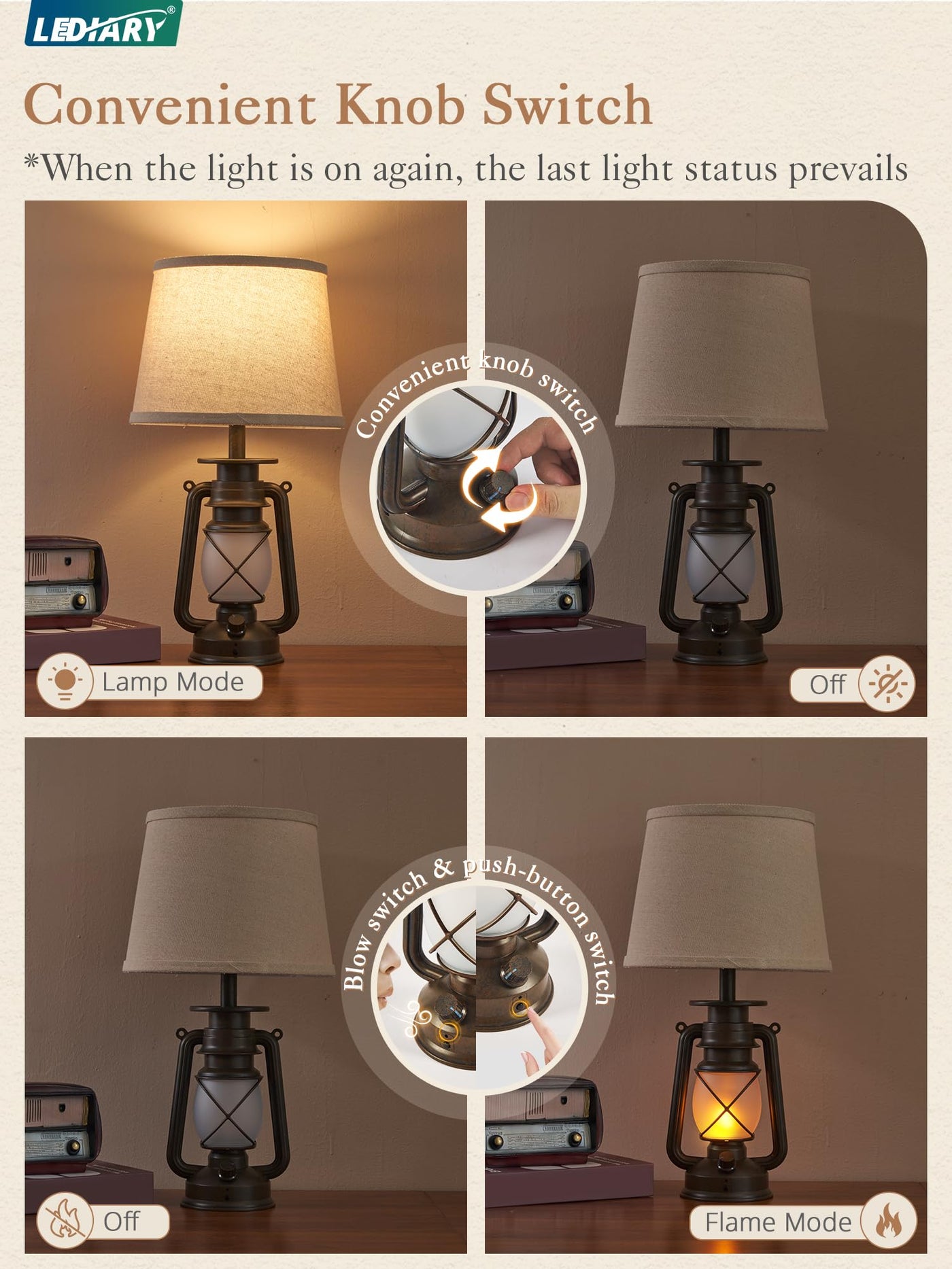 Lediary 18.72'' Blow-Controlled Led Lantern Flickering Flame Table Lamps For Bedrooms Set Of 2, Small Farmhouse Rustic Bronze En
