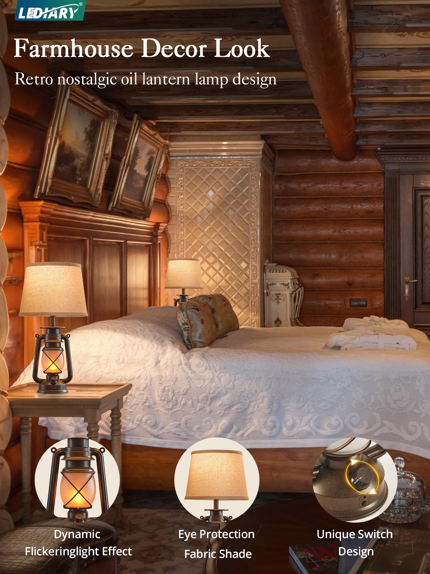 Q: Where can I use the LEDIARY lantern lamps in my home?A: These vintage-inspired lantern lamps are versatile and can be used in various settings, including bedside tables, living room end tables, bedroom side tables, or even entryway tables, adding a charming decorative touch to any space.