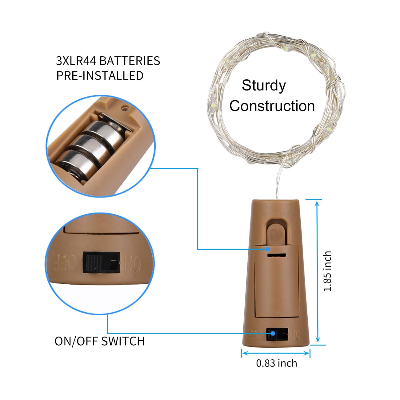 Q: Are the LEDIKON cork lights safe to use around children and pets?A: Yes, the LEDIKON cork lights are designed with safety in mind. They feature energy-efficient LED light sources that remain cool to the touch, minimizing the risk of burns or electrical hazards, making them safe for use around children and pets.