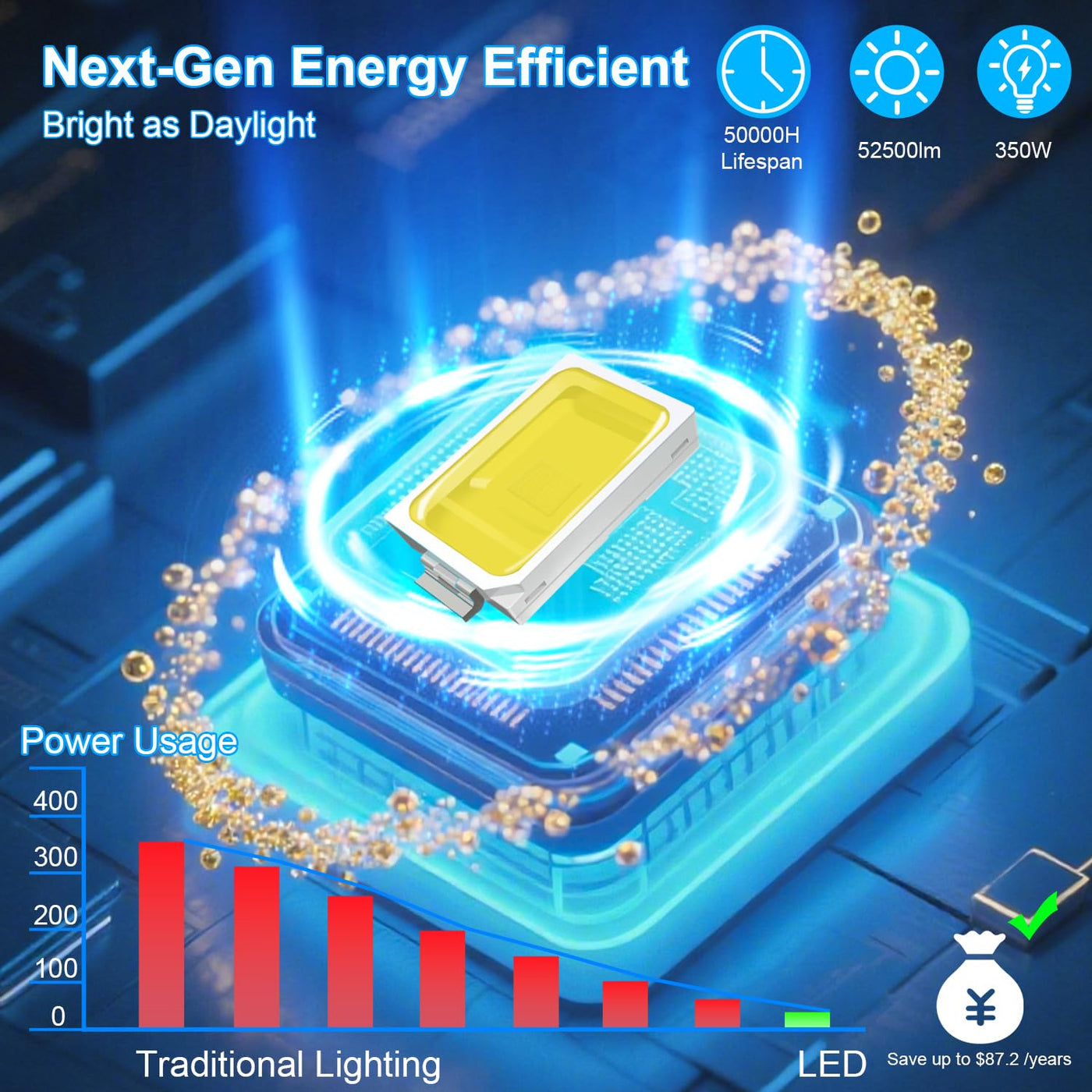 This 350W Led Parking Lot Light Built-In Led Beads With A Luminous Flux Reaching 52 500 Lumens. Designed For Large-Area Illumination It Is Ideal For Use In Sport Stadium.