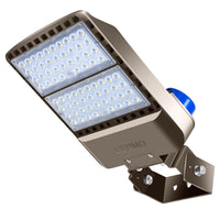 Q: How do I install the LEDMO LED Parking Lot Lights?A: The installation of LEDMO LED Parking Lot Lights is straightforward due to their lightweight and flexible design. They come with a trunnion mount that allows for adjustable angles from -90 to +90 degrees, making them compatible with both round and square poles.