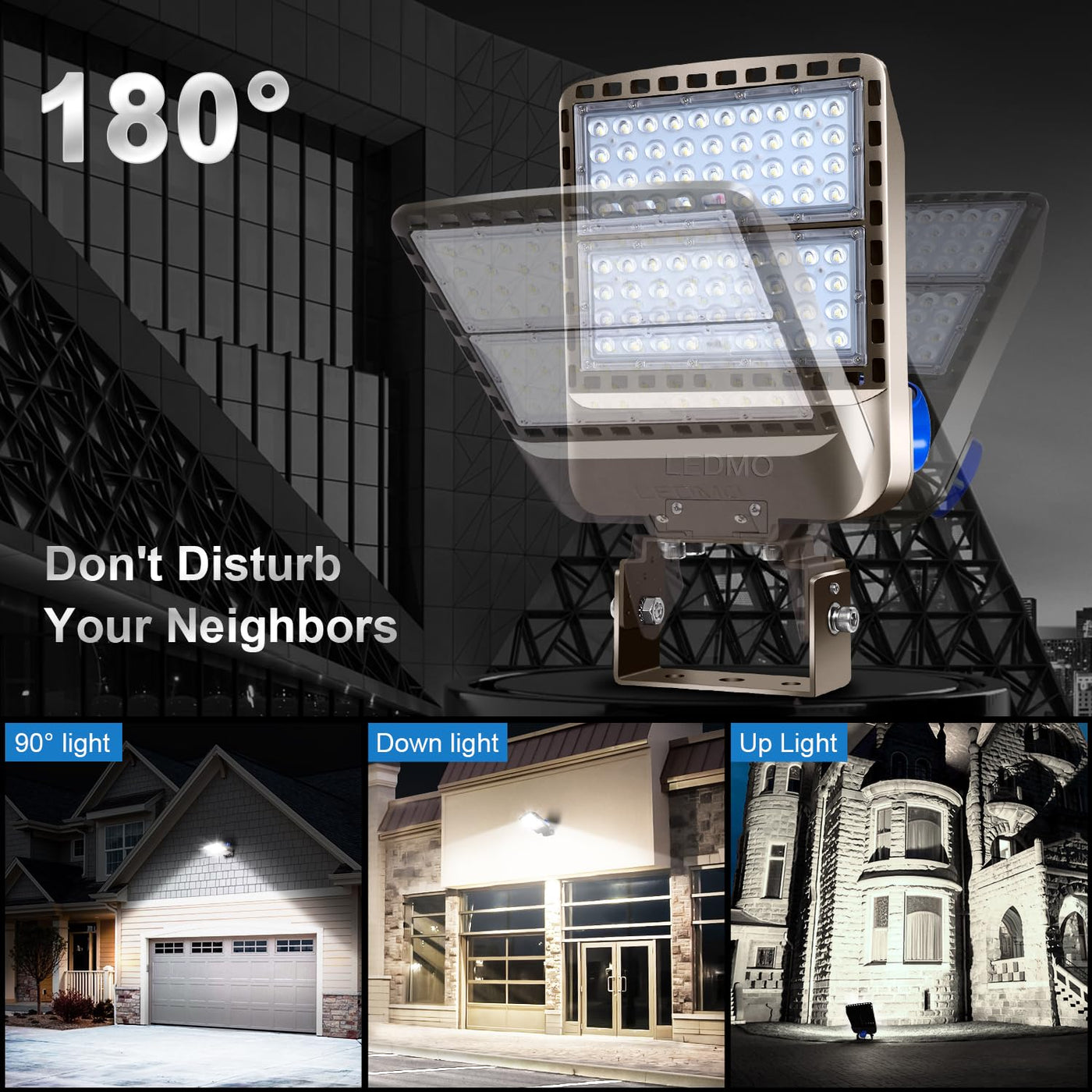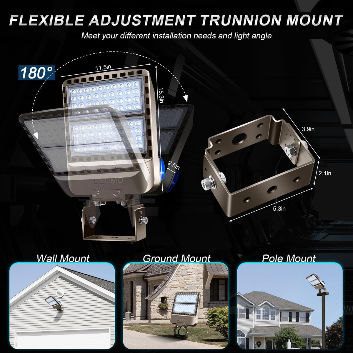 Ledmo Led Parking Lot Lights Adjustable Trunnion Mount 200W Dusk To Dawn Outdoor Lighting With Photocell Flood Area Lights 5000K Commercial Wall Mount Ip65 Led Shoebox Lighting