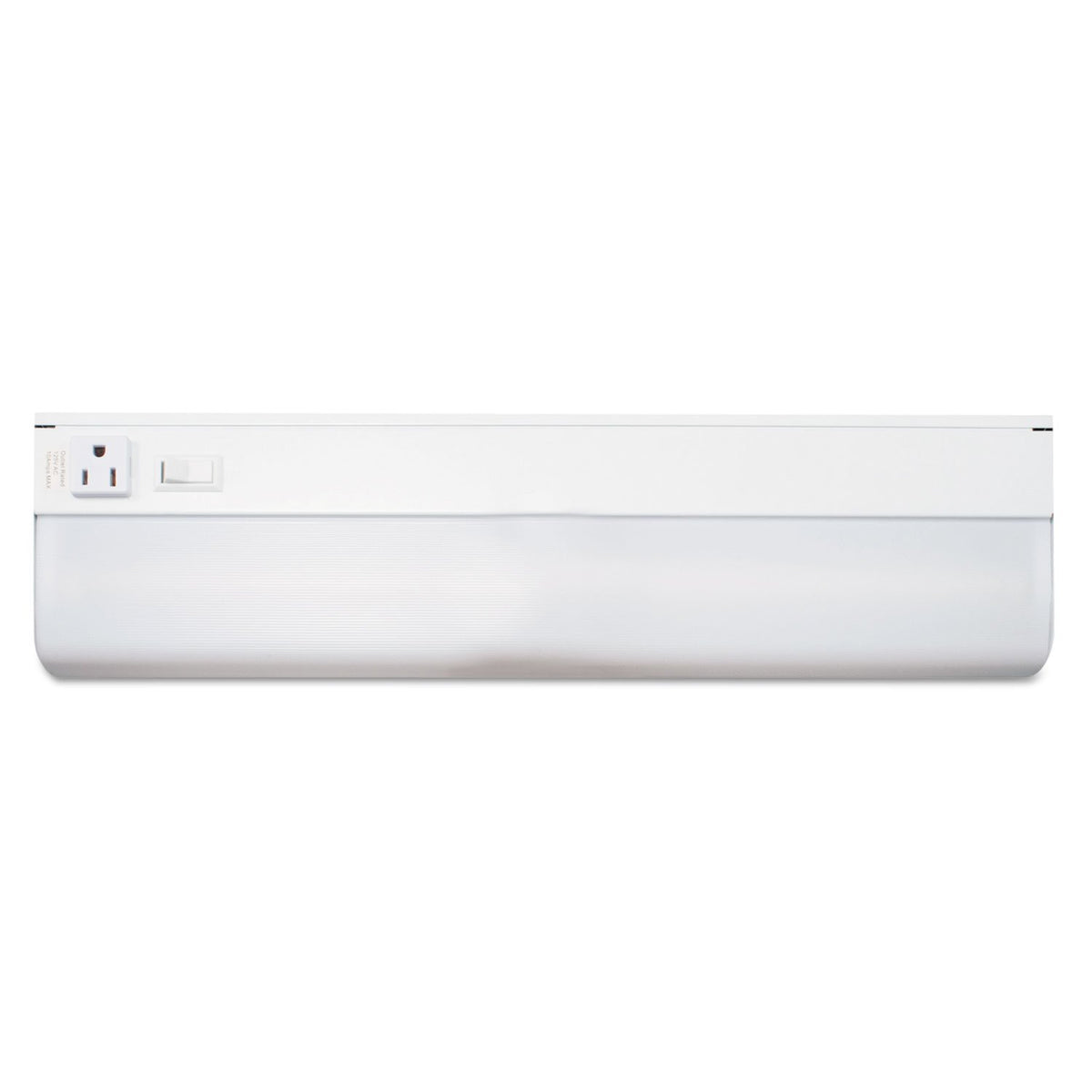 Under-cabinet light features an all-white steel housing, on/off rocker switch and snap-in ribbed acrylic diffuser. 64'' cord has a two-prong grounded plug. Under-cabinet light includes mounting hardware and fluorescent tube. Energy-efficient light is easy to install, and bulbs are easy to replace. Replacement bulb is a 15 watt T8 tube. U.L. listed.