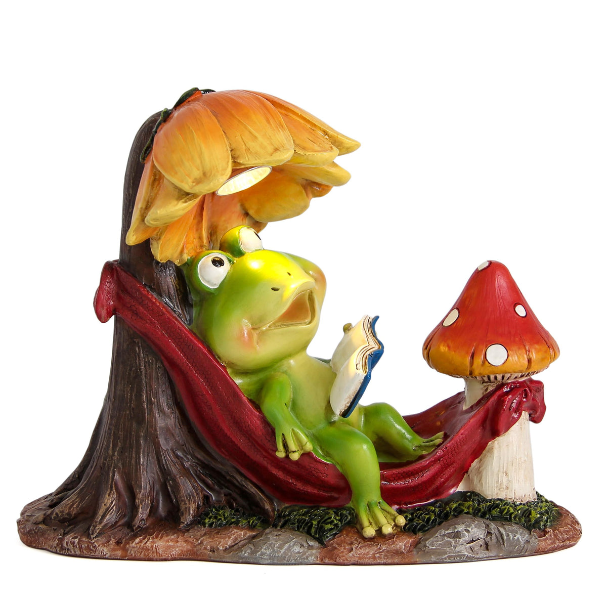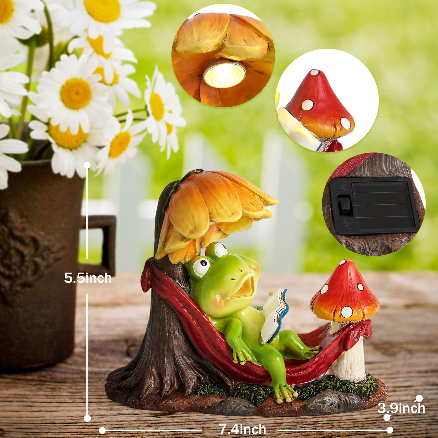 Leekung Solar Frog Garden Decor,Frog Statue With Solar Light For Outdoor Decorations,Reading Frog Figurine Garden Statues For Ou