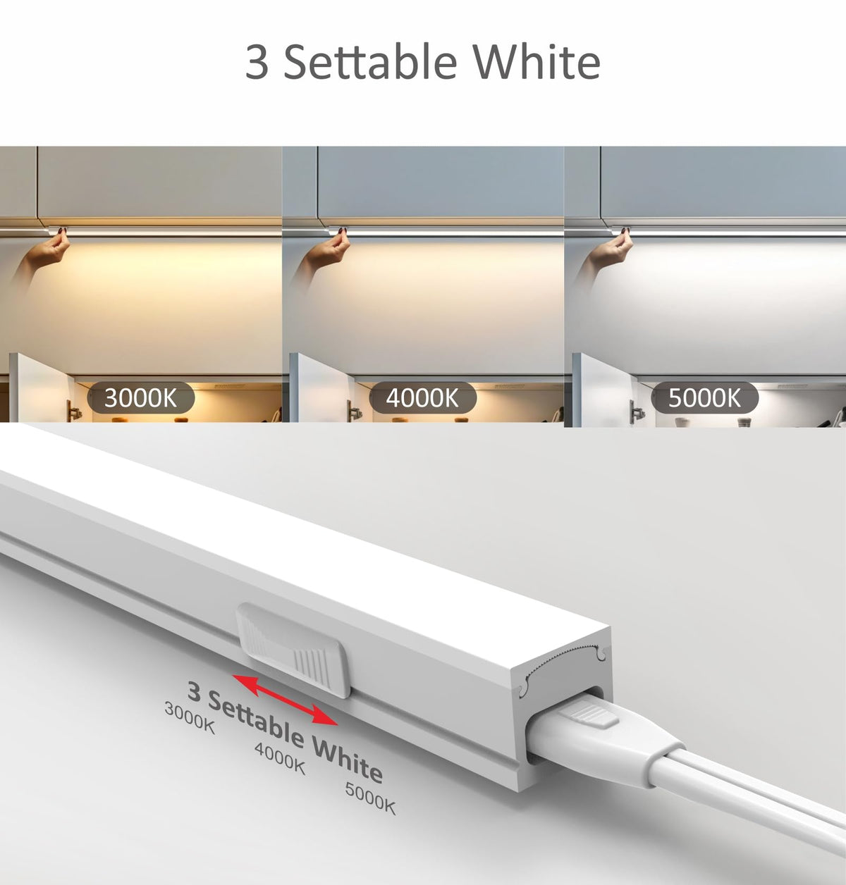 Leetdud Under Cabinet Lighting Plug In, 24 Inch 1 Pc, Linkable Ac120V 3Cct 3000K/4000K/5000K Ultra Slim, Led Under Cabinet Light
