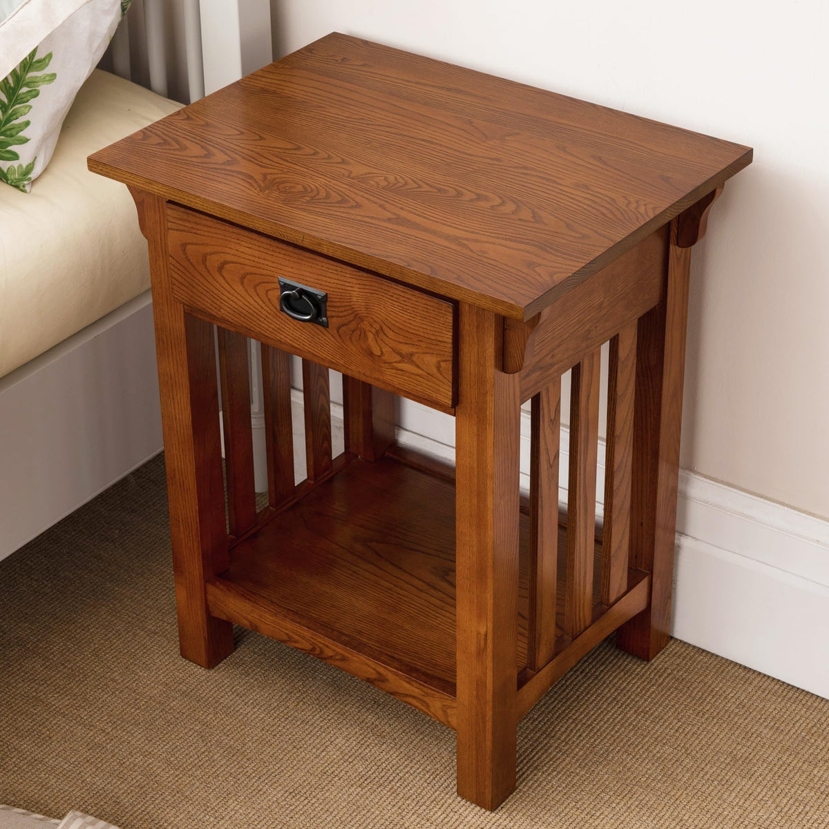 Leick Home 8222 Mission Impeccable End Table With Drawer, Made With Solid Wood, Side Table For Living Room, Bedroom, Medium Oak