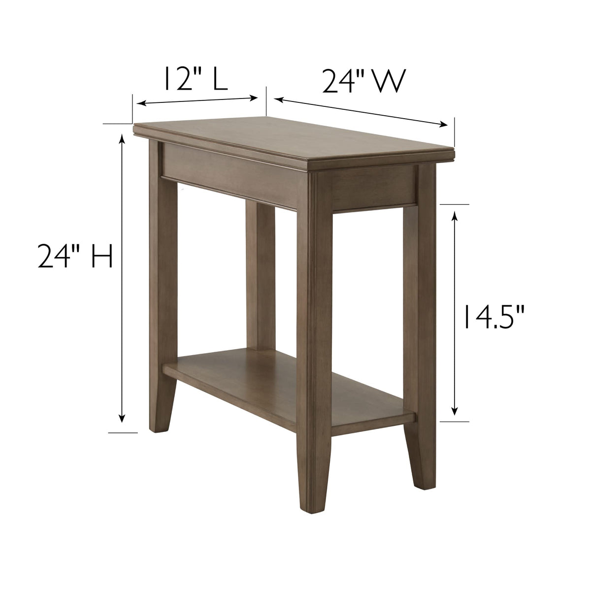 Leick Home Laurent 12 In. Narrow End Side Table, Solid Wood With Shelf, Smoke Gray, 10505-Gr