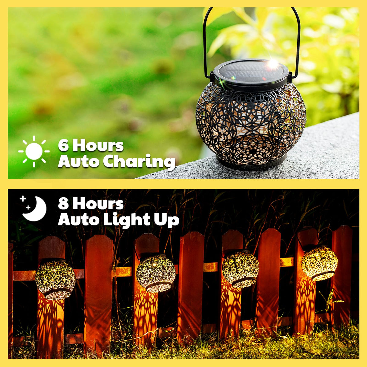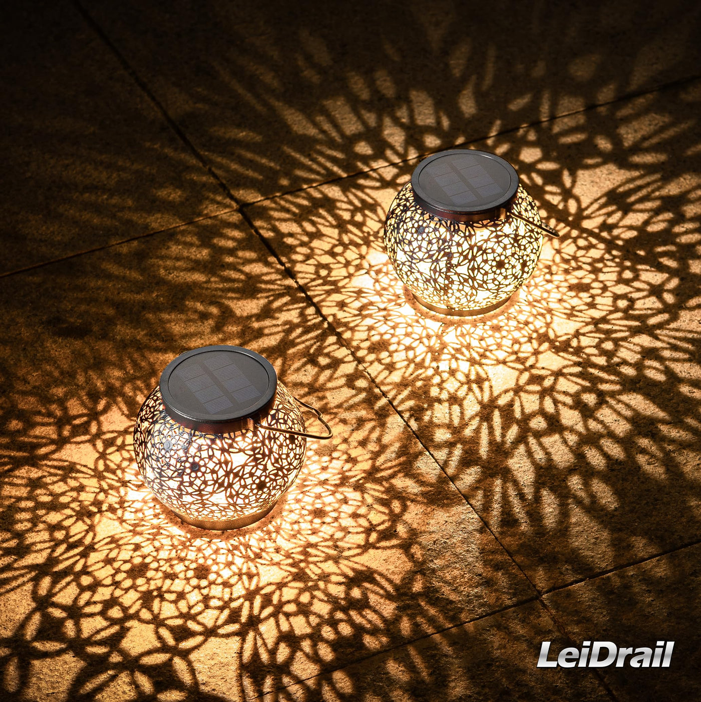 LeiDrail Solar Lanterns are vintage and elegant outdoor waterproof solar lights with unique hollowed-out patterns that create a romantic atmosphere at night. Equipped with high-efficiency solar panels, they charge fully in 6 hours of sunlight and provide up to 12 hours of illumination. The IP65 waterproof rating ensures durability in harsh weather. These lanterns can be hung from trees or placed on tables and the ground, making them versatile for gardens, patios, and yards. They are not only practical but also decorative, making them ideal gifts for birthdays, Mother 's Day, Christmas, and more.
