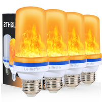 Leinetfor Led Flame Effect Light Bulb, 4 Modes Flickering Light Bulbs Halloween Decorations,E27 Base Outdoor Led Fire Light Bulbs With Gravity Sensor For Christmas,4W Flame Light Bulbs (Yellow-4Pack)
