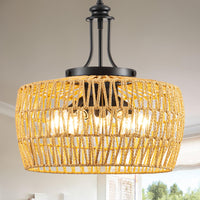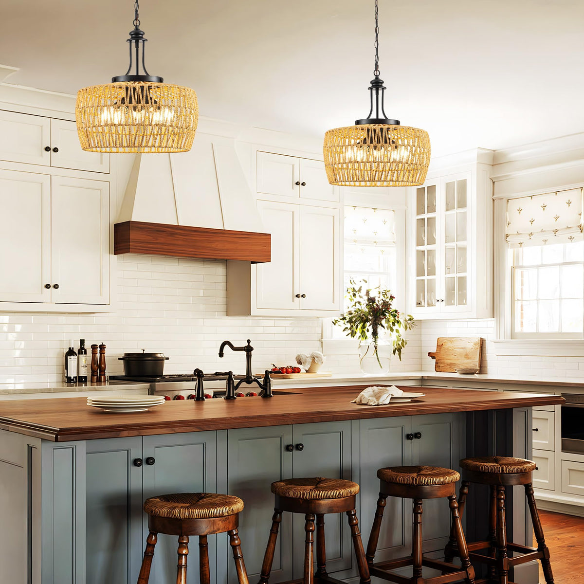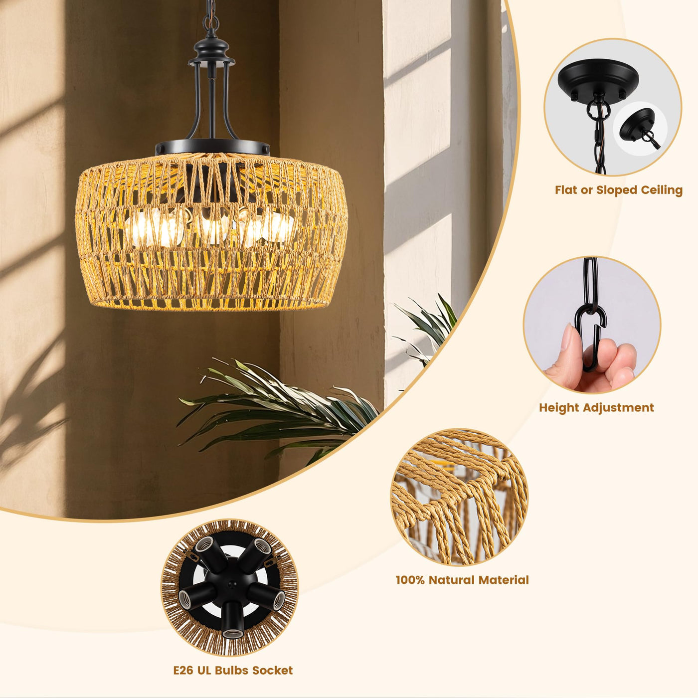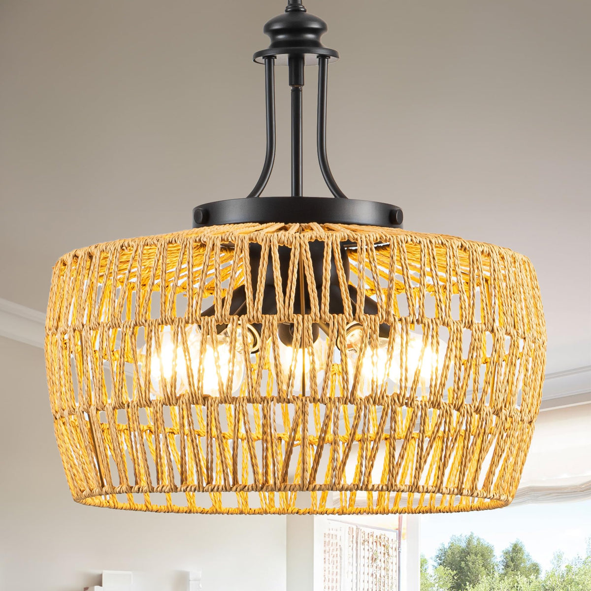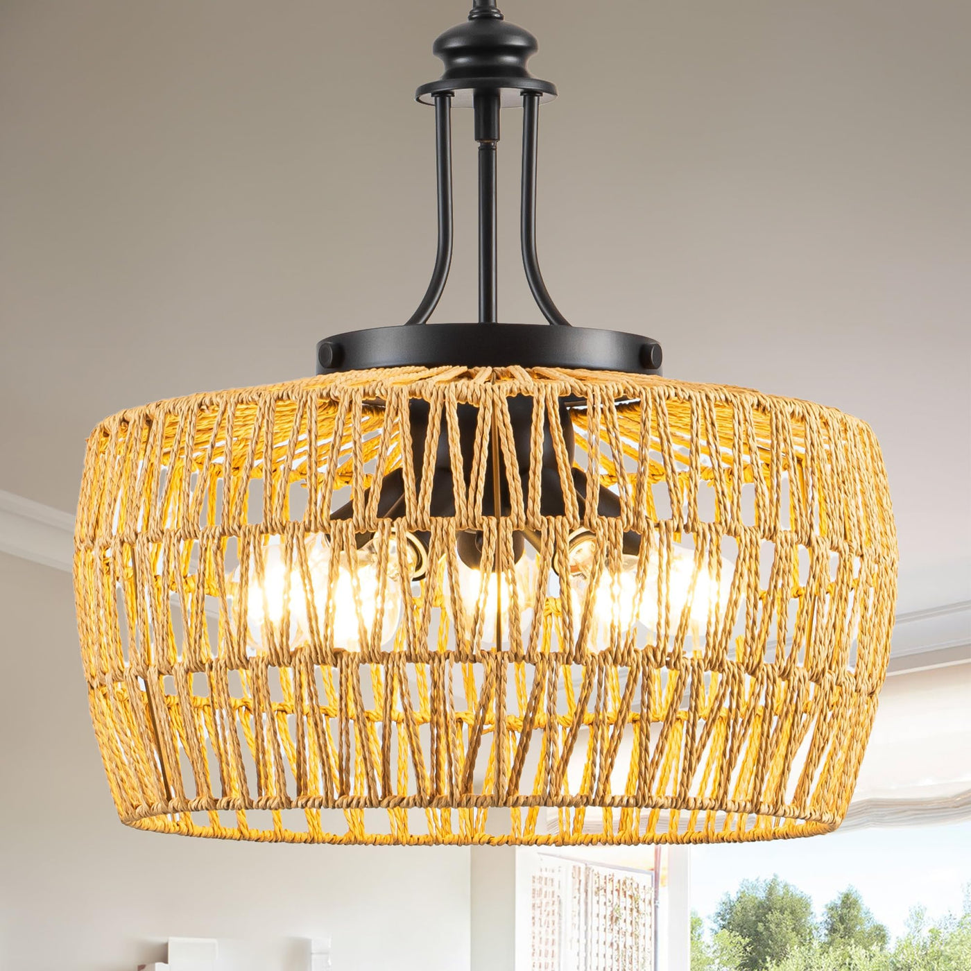 Leip 18.1'' Boho Rattan Chandelier - 5-Light Handwoven Farmhouse Pendant Light For Kitchen Island, Dining Room, Living Room - Ad