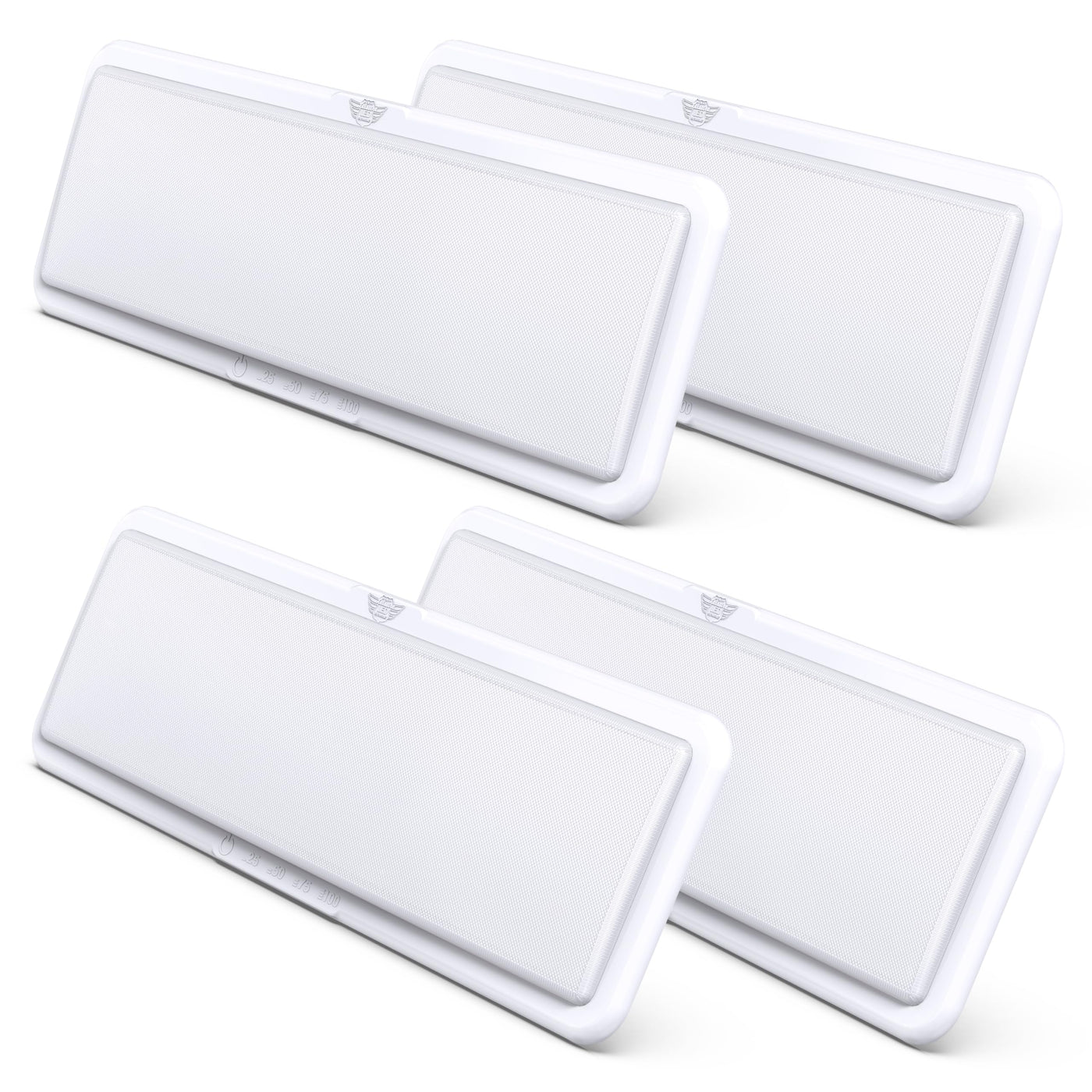 Leisure LED RV Ceiling Light Fixture, 20in x 6.5in, 1450 Lumen, Touch Dimmer, 12V, White, Plastic, 4-Pack, Model LL