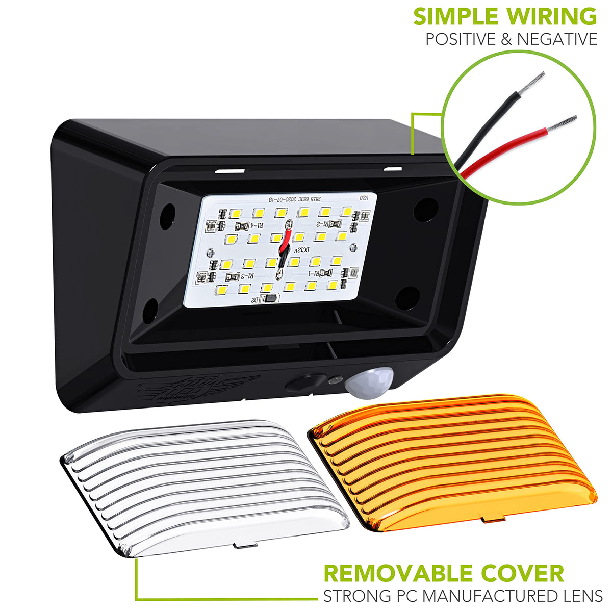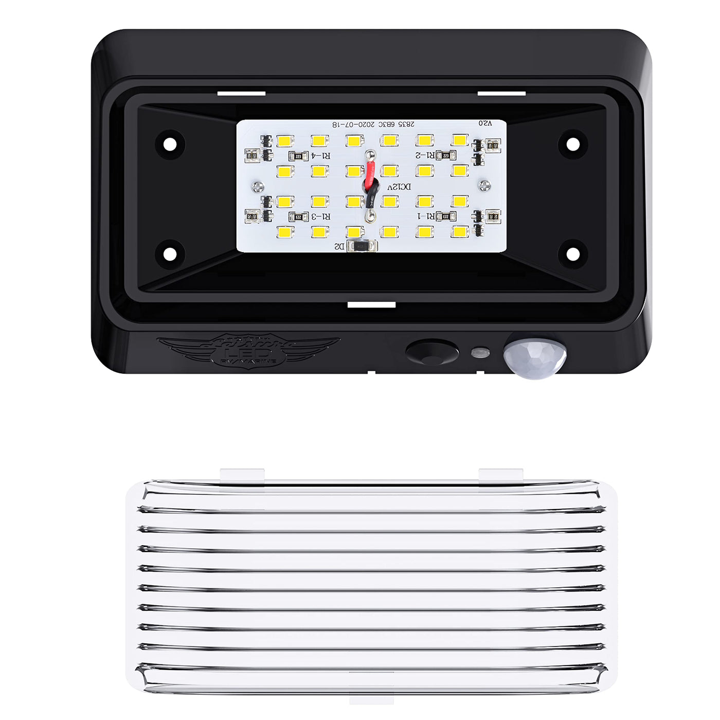 Leisure LED Rectangle Night Sensor Porch Light Without Switch 300 Lumen Cool White Description: LED Rectangle Porch Light Fixture 300 Lumens Made with Environment-friendly technology and materials. Wide Voltage Range : 11-18 volts Applications include 12 Volts DC recreational vehicles.