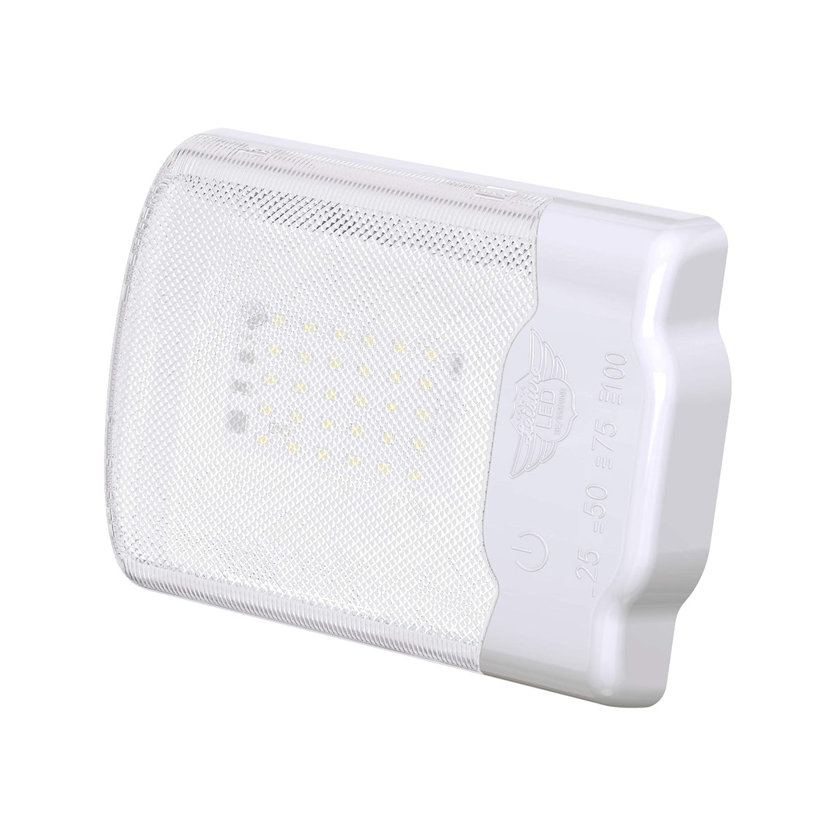 Q: What is the brightness level of the Leisure LED RV Ceiling Dome Light?A: The Leisure LED RV Ceiling Dome Light Fixture provides a brightness of 325 lumens, thanks to its 30 high-quality 2835 SMD chip LEDs.