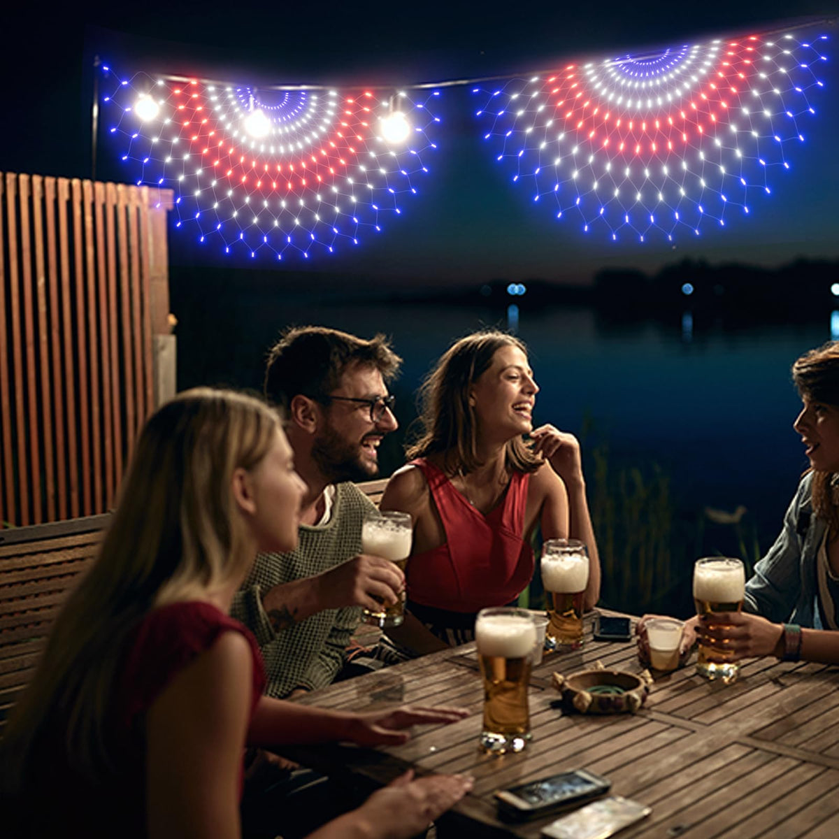 - **Easy Installation and Versatile Display**: Each light features a tail plug, allowing for easy series connection with multiple light strings to meet various needs. Four hooks are included for convenient installation, enabling you to hang the LED American lights anywhere you desire. The half fan shape is perfect for decorating any space, whether it's your home, office, or event venue.