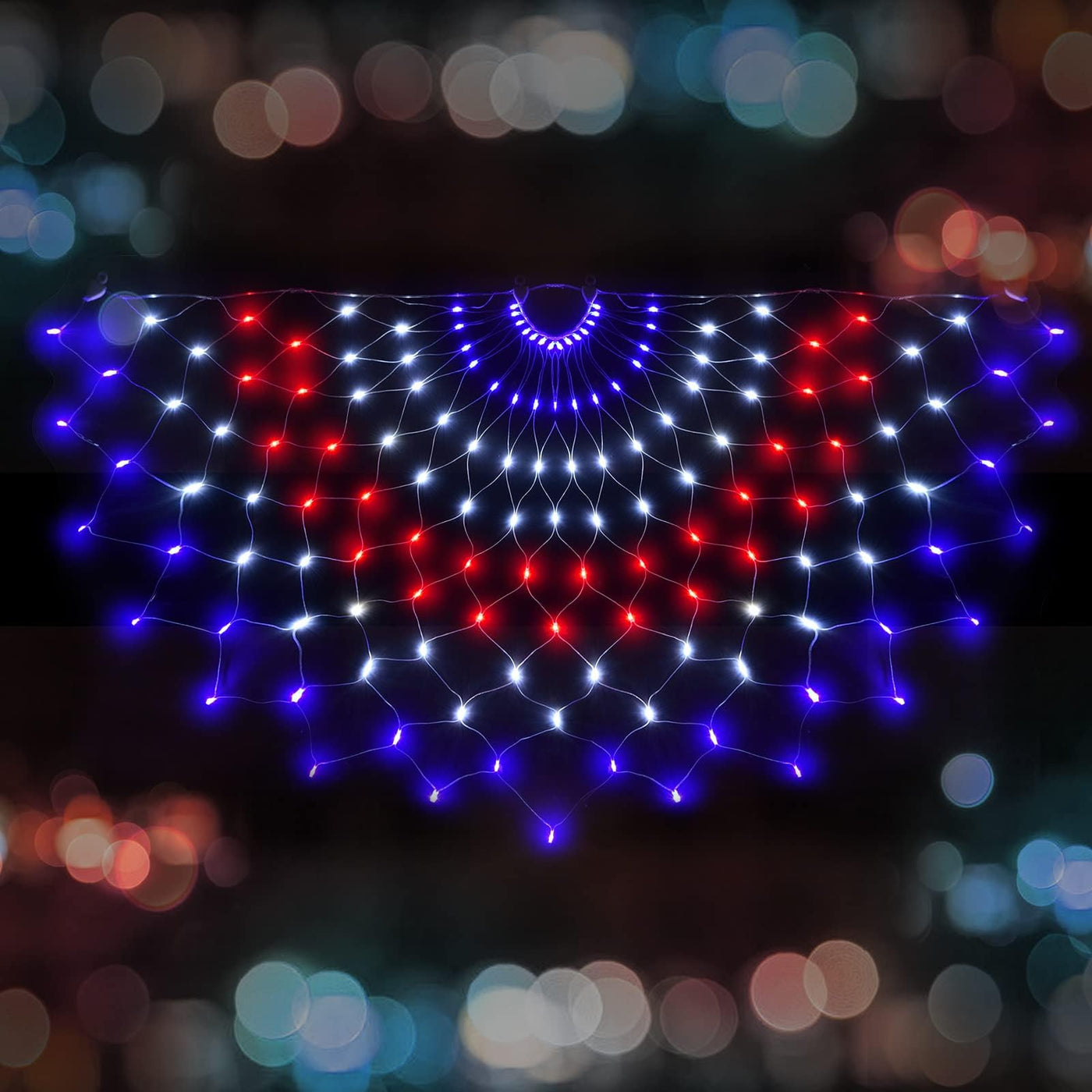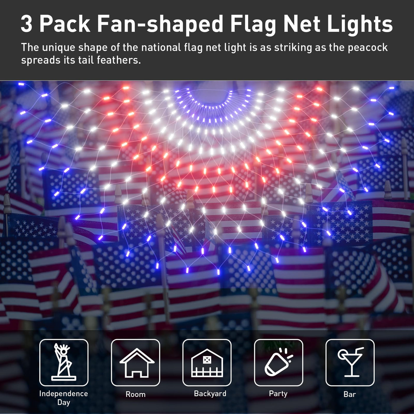 Leisure World 150 Led American Flag Lights, 3 Pack, 8 Modes, Outdoor Patriotic Decor