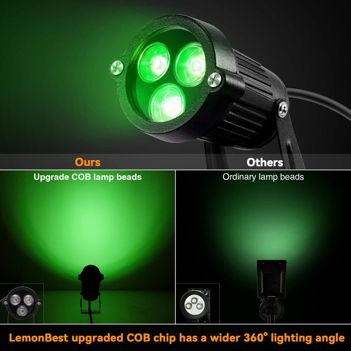 Lemonbest Outdoor Water-Resistant Led Lawn Garden Landscape Lamp Wall Yard Path Patio Lighting Spot Lights Green Ac Spiked Stand