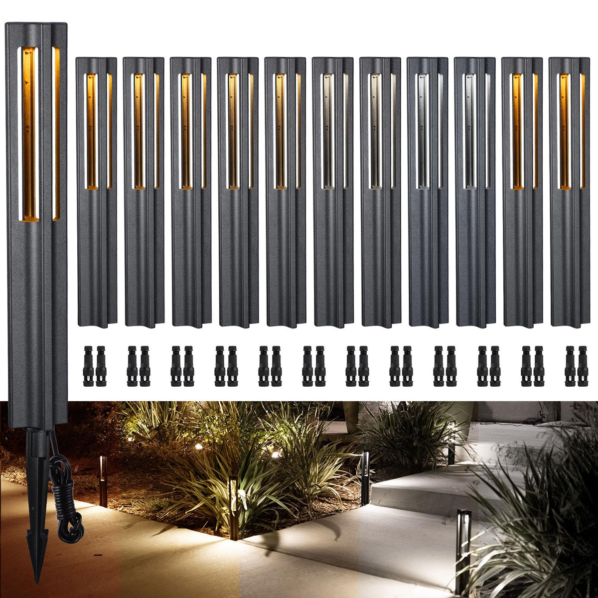 Leonlite 12-Pack 5Cct Low Voltage Path Lights, 1800K2700K3000K4000K5000K Selectable, 3W Led Landscape Pathway Lights, Outdoor La