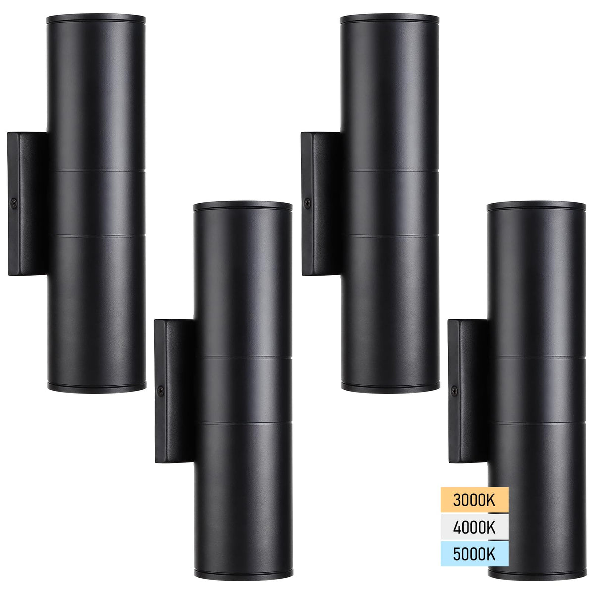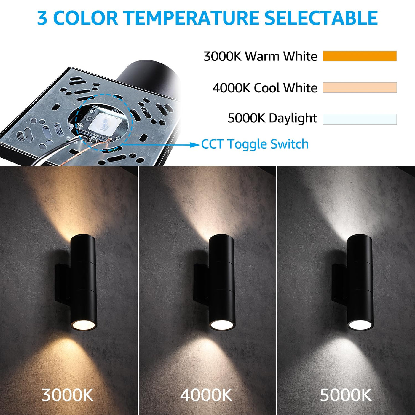 Leonlite 3Cct Integrated Led Cylinder Up Down Wall Light Outdoor, 100V-277V 20W Aluminum Waterproof High-End Wall Sconce In 2 Lights, Etl Exterior Front Door Porch Light, 3000K 4000K 5000K, Pack Of 4