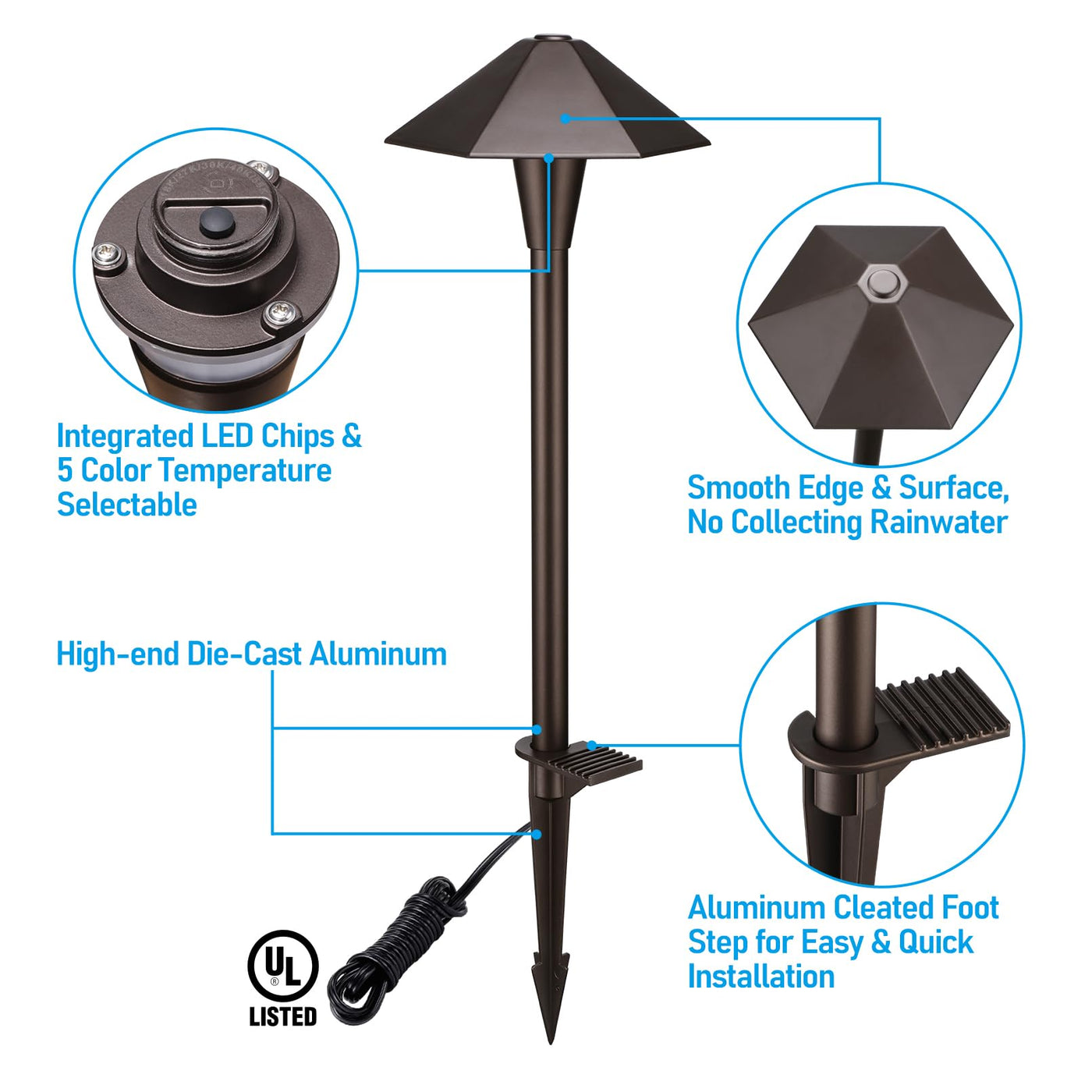 Hexagon Head Design: Features an elegant hexagon head that enhances the visual appeal of your garden, pathways, and driveways. The oil-rubbed bronze finish adds a touch of vintage charm.
