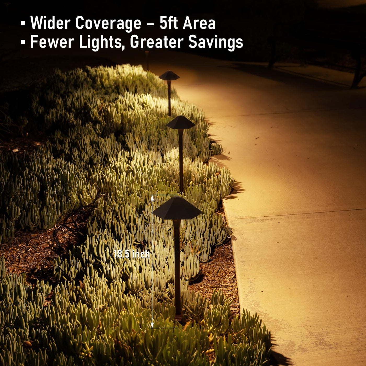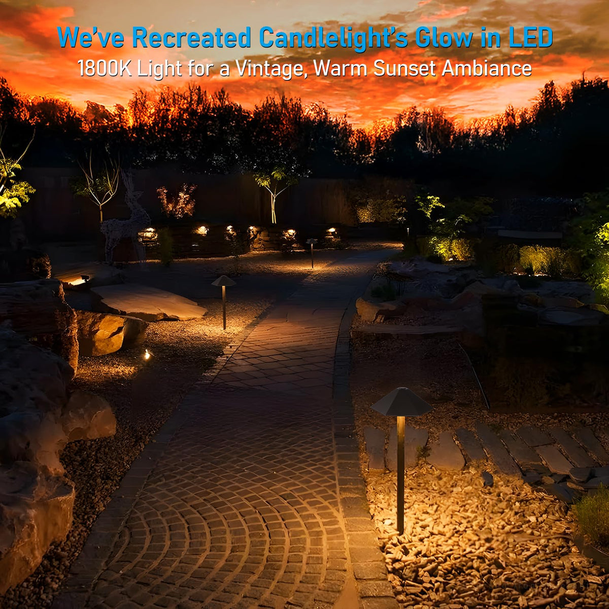 Q: What voltage do these landscape lights operate on?A: These pathway lights operate on a low voltage of 12-24V AC/DC, making them compatible with most low voltage landscape lighting systems.