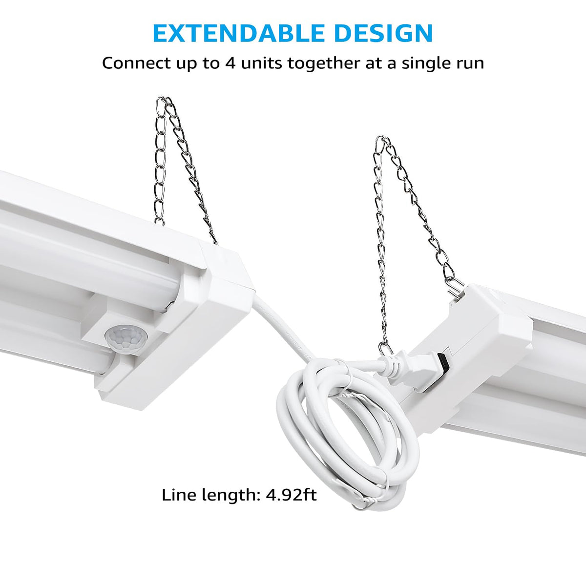 Q: Can I link multiple LEONLITE LED shop lights together?A: Yes, the LEONLITE LED Utility Shop Light features a linkable design that allows you to connect up to 4 units together. This is ideal for larger spaces and reduces the number of power sockets needed.
