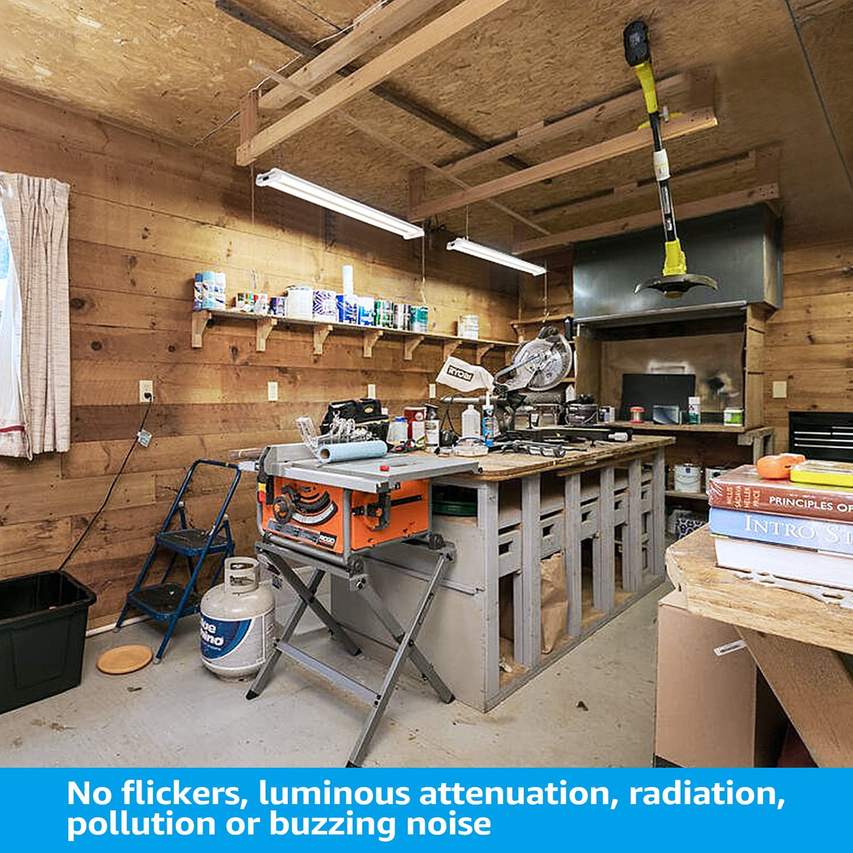 This LED shop light is not just about functionality; it stands out in the market with its superior design and performance. The 240 integrated high-quality LED chips provide an even light distribution, eliminating glare and buzzing, ensuring a comfortable lighting experience. With a lifespan of 50,000 hours, this energy-efficient light is built to last, equating its output to that of 120W T8 tubes without the harmful chemicals or radiation found in traditional lighting solutions.