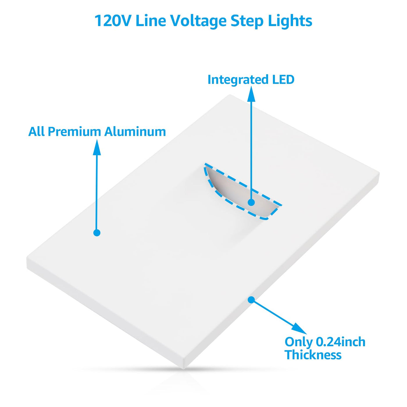 Q: Are the LEONLITE Step Lights suitable for outdoor use?A: Yes, these step lights are waterproof and rated for wet locations, making them ideal for both indoor and outdoor use, including stairways, pathways, and patios.