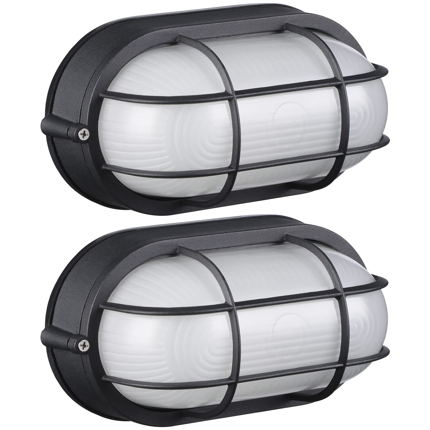 Leonlite 8.5'' Nautical Bulkhead Light Fixture, Etl Listed, Aluminum, Pack Of 2, Black
