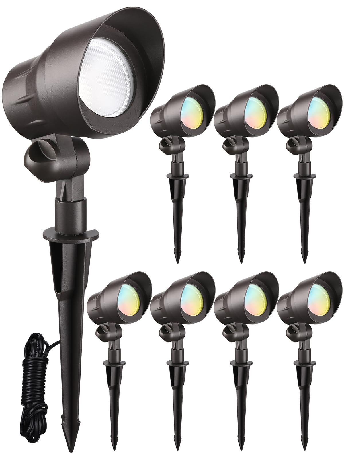 Leonlite 8-Pack 3Cct Low Voltage Led Landscape Spotlight, 3000K/4000K/5000K Selectable, 4W 12V Pathway Lights Outdoor Cri90+, Al