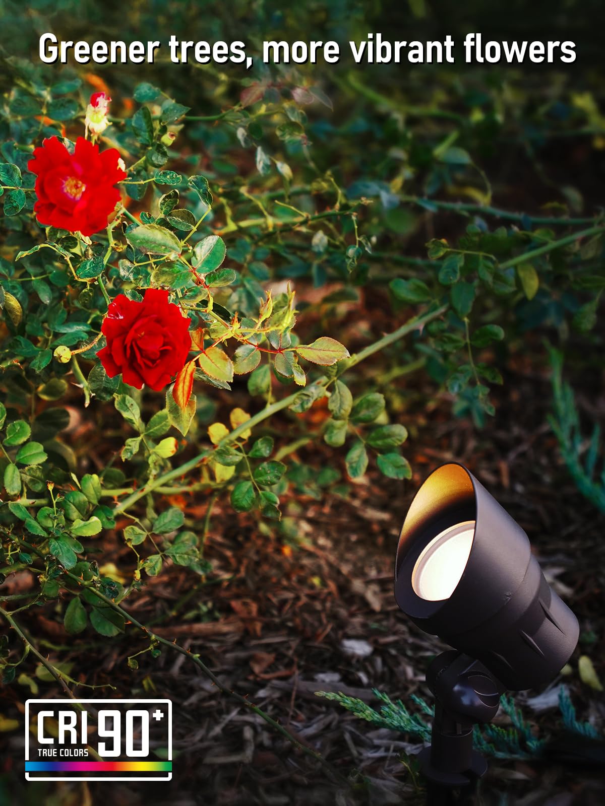 Safe To Use This Etl Certified Low-Voltage Landscape Tree Lighting Is Easy To Connect With No Need To Worry About Fire Hazards; Ac/Dc 12V-24V Low Output Voltage, To Provide A Safe Environment For Children Or Pets Around. Wide Application The Rugged Aluminum Shell Is Resistant To Corrosion And Heat Dissipation. Ip65 Grade Brings Better Waterproof Performance, Which Is The Best Choice For Outdoor Wet Places; 3 Color Temperatures Are Available: 3000K Warm White, 4000K Cool White, And 5000K Daylight. You Can Select An Appropriate Color Temperature As Required. User-Friendly 18 Led Chips And The Upgraded Lens Make It Bright And Glare-Free. The High Cri Of 90+ Allows This Low-Voltage Garden Light To Take On The Natural Color Of The Object, And A Narrow Beam Angle Of 45? Is Used For The Exterior Of The House, Palm Trees And Tall Oaks. Specifications: Wattage: 4W Voltage: 12-24Vac/Dc Luminous Flux: 164Lm Lifespan: 40000Hrs Cct: 3000K Warm White/4000K Cool White/5000K Daylight Selectable Material: Die-Cast Aluminum Finish Color: Bronze Waterproof Rating: Wet Beam Angle: 45? Working Temperature: -4?F-104?F