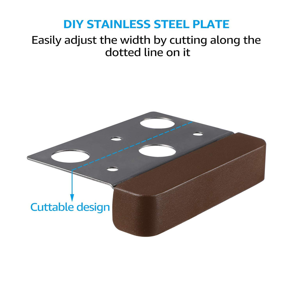 The adjustable stainless steel plate allows for easy customization of width by cutting along the dotted line, simplifying installation. The detachable aluminum light bar, along with included mounting accessories and waterproof connectors, ensures compatibility with 16AWG and 18AWG wires.