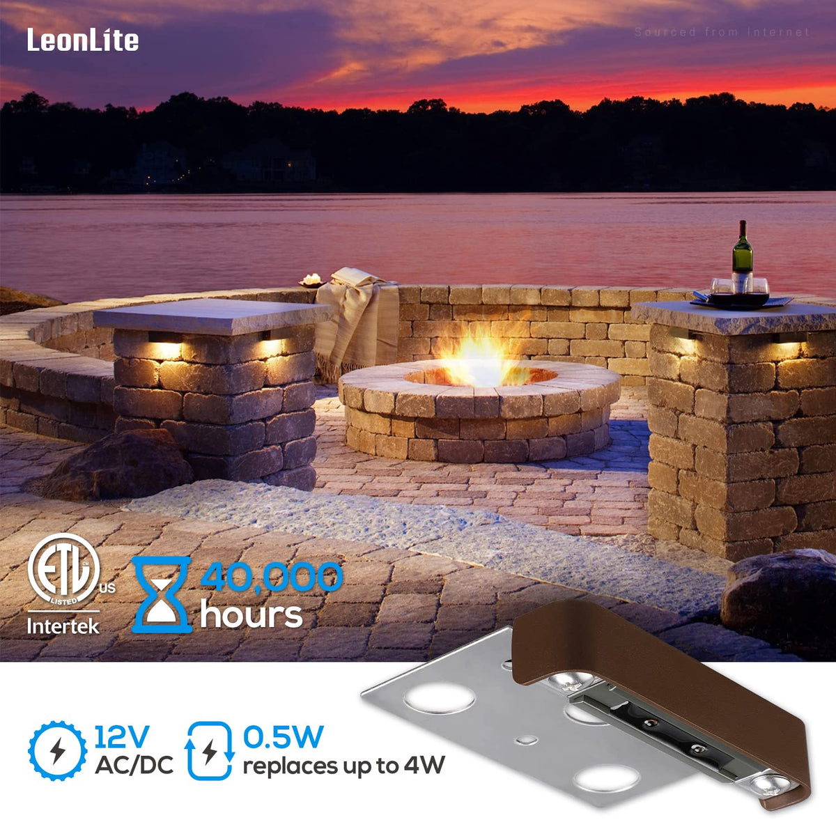 Versatile use in outdoor settings, perfect for illuminating barbecue pits, landscape steps, and masonry walls.