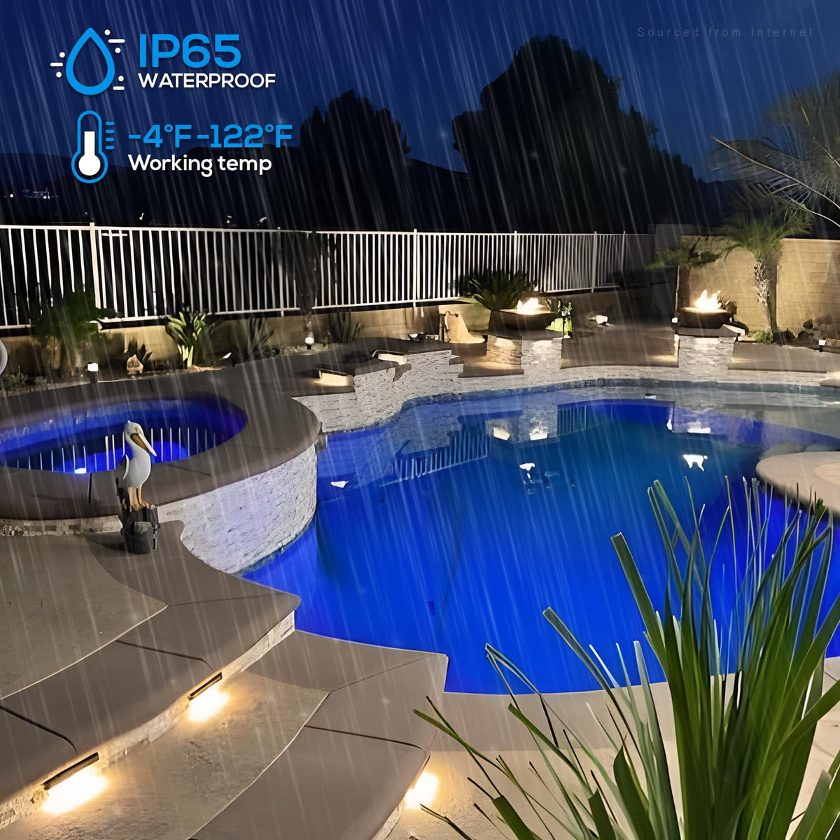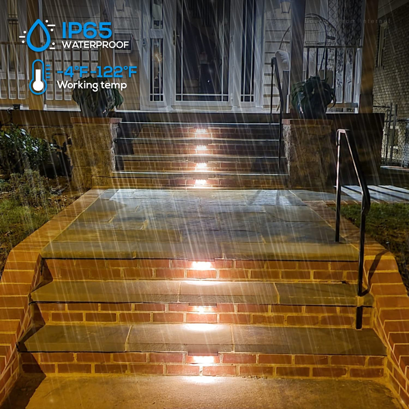 This LED light emits 44 lumens of soft white light at 2700K while consuming only 0.5 watts of power. Its IP65 waterproof rating ensures reliable performance in bad weather, making it suitable for decks, barbecue fire pits, landscape steps, flowerbeds, and masonry walls.