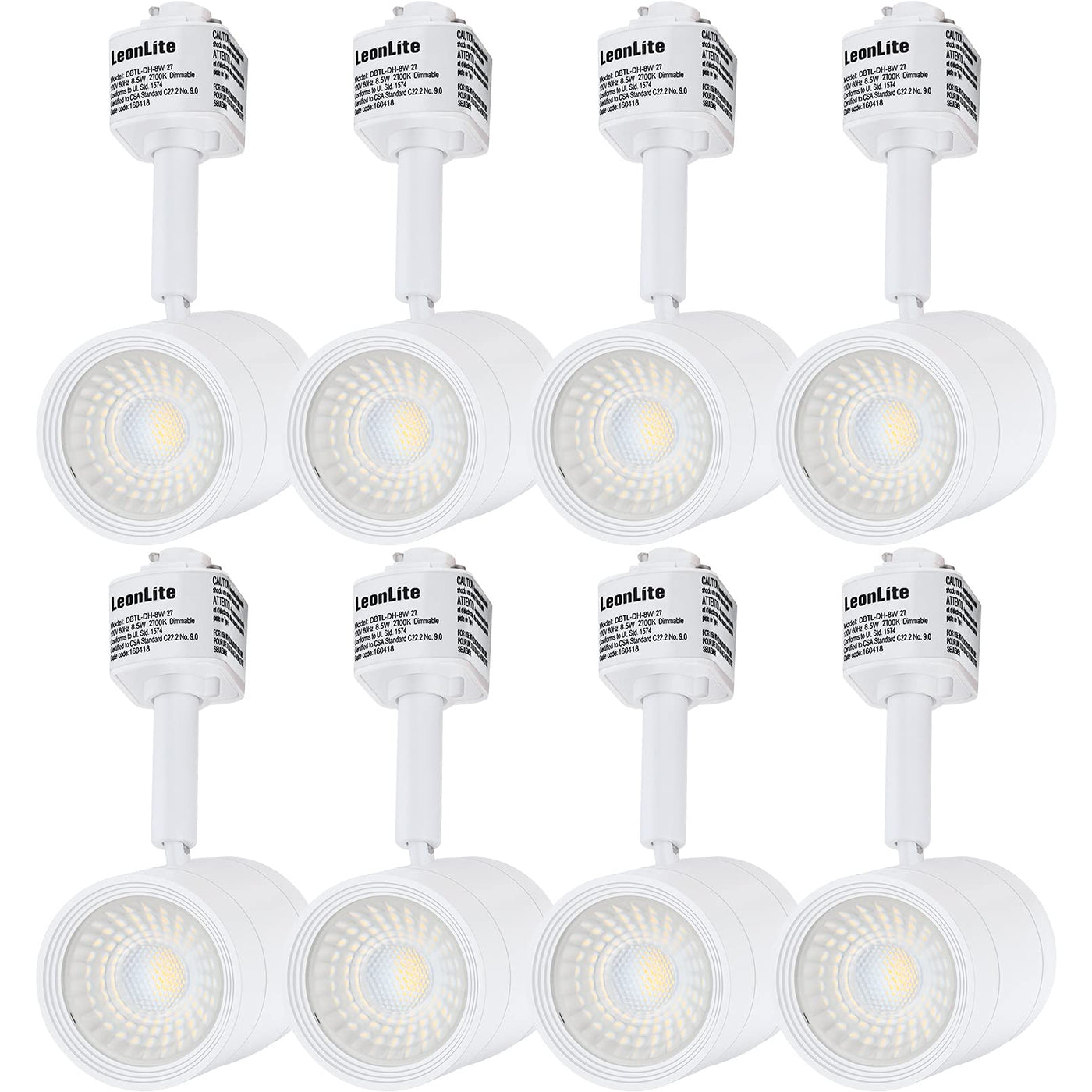 Leonlite 8-Pack 8.5W Led Track Lighting Heads, Cri90 H Track Lighting, Dimmable Track Light Heads, Etl Listed, 36° H Track Lighting Heads, 2700K Soft White, Matte White