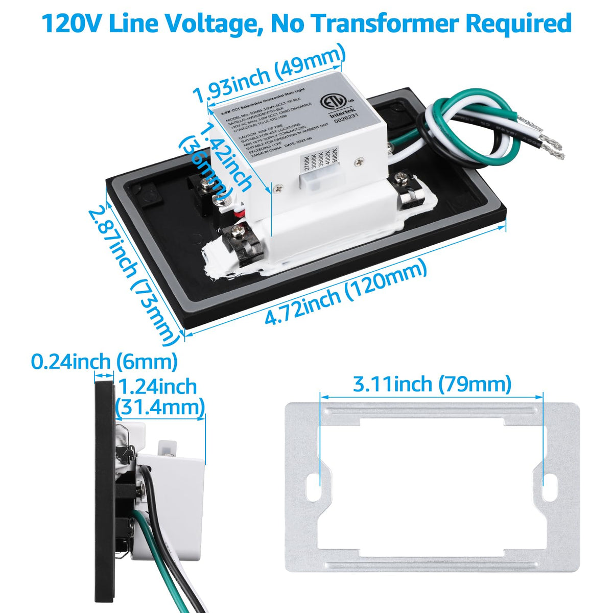 Use With Confidence 120V Input Voltage, No Transformer Required, So You Don'T Have To Worry About Too Many Products Connected To The Same Line Causing The Tail Light Not To Light Up, Or Accidentally Exceed The Maximum Power Of The Transformer And Lead To Transformer Damage. 5Cct Adjustable Color Temperature This Lamp Can Be Adjusted To A Minimum Color Temperature Of 2700K To Emit A Soft And Warm Glow, Neither Harsh Nor Flickering; Reduce Your Stress And Promote Sleep, Is The Best Choice For Bedroom Lighting. 5%-100% Dimmable This Light Is 5%-100% Dimmable And Compatible With Most Led Dimmers On The Market, Making It The Perfect Choice For Lighting Up A Conference Room. Note It Is Recommended To Adjust The Color Temperature Before Installation; Junction Box Not Included. Specifications Wattage: 3.5W Voltage: Ac120V Luminous Flux: 150Lm Cri>90 Cct: 2700K/3000K/3500K/4000K/5000K Selectable Finish Color: Black Waterproof Rating: Wet Locationdimming Range: 5%-100%Dimmers: Compatible With Triac Dimmersworking Temperature: -4? - 113? Lifespan: 30000Hrs