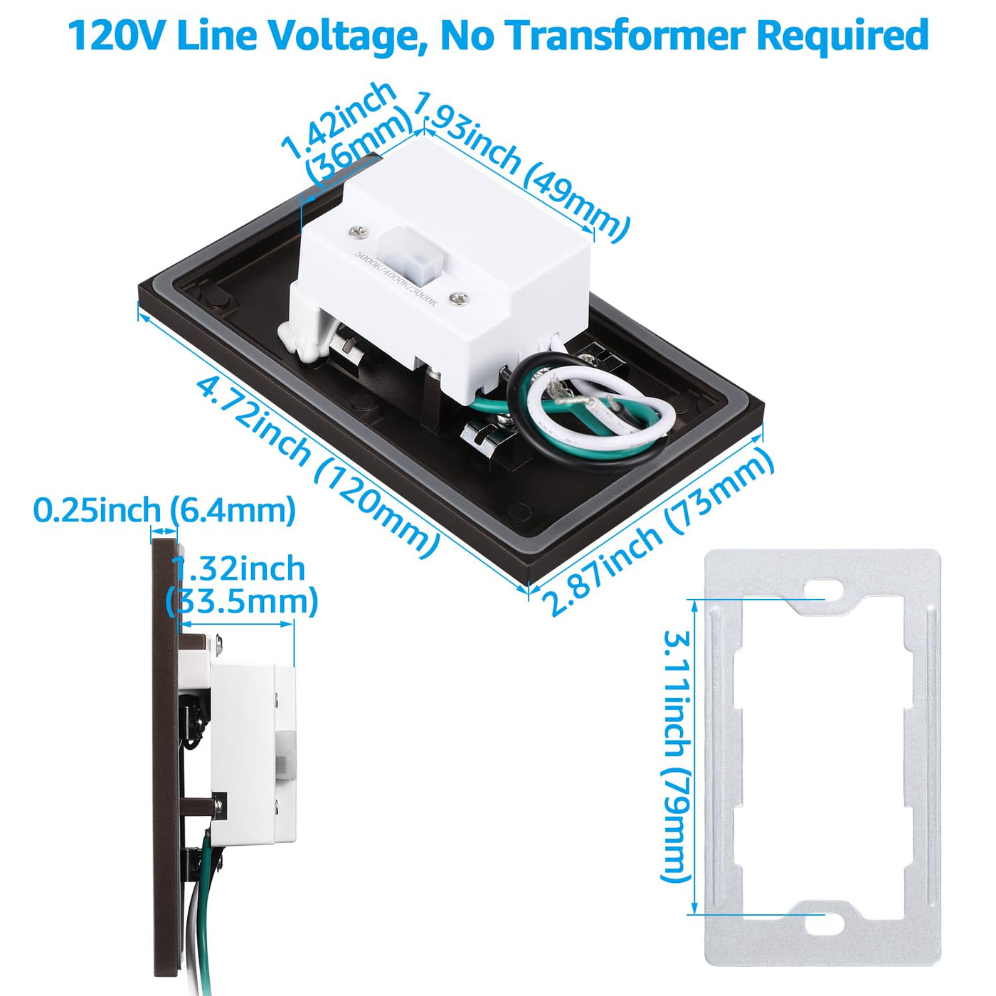 Easy installation with no transformer required; package includes all necessary screws and wiring caps.