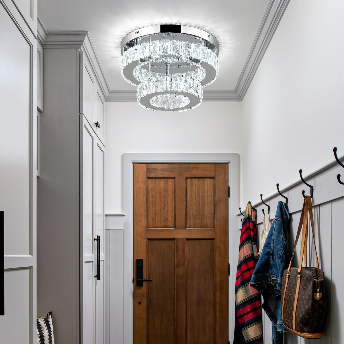 Leontyne 12 Inch Mini Chandelier Led Crystal Ceiling Light 2 Layers Flush Mount Ceiling Light Modern Chandeliers Lighting For Be