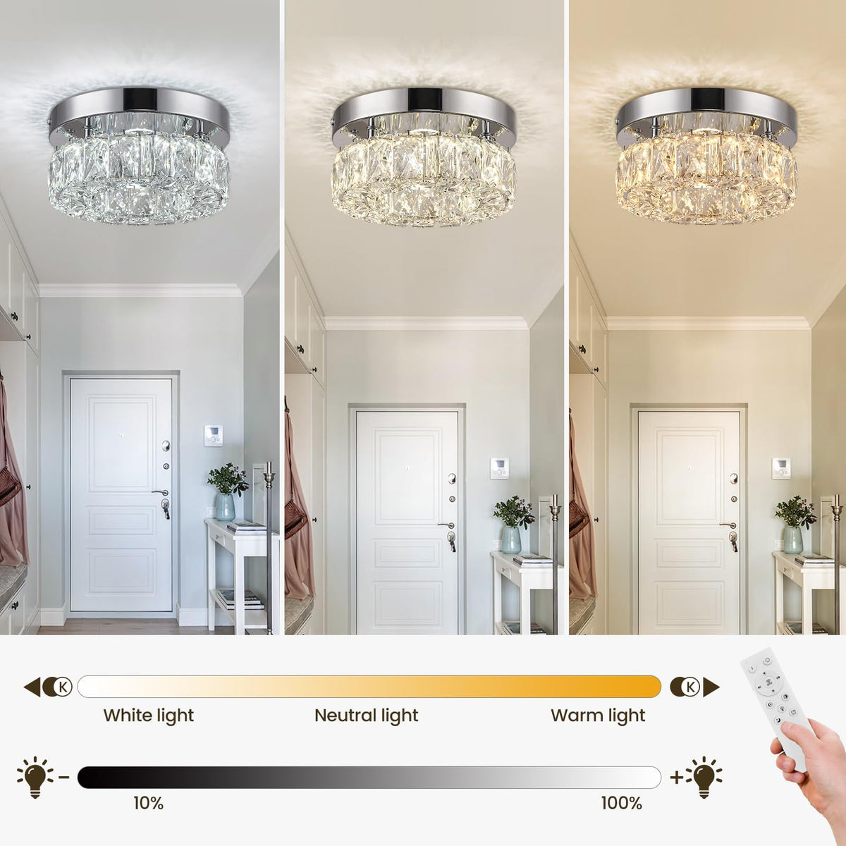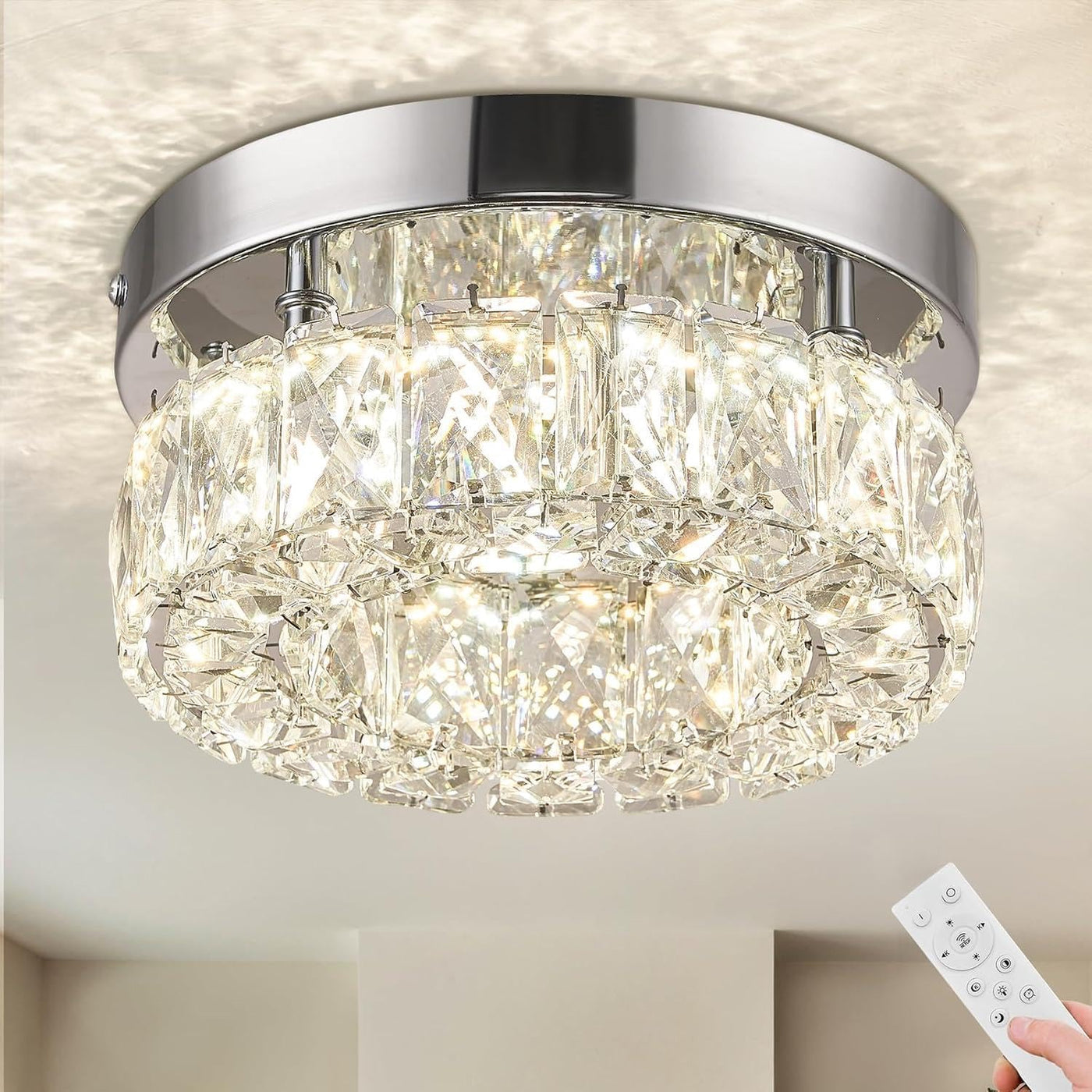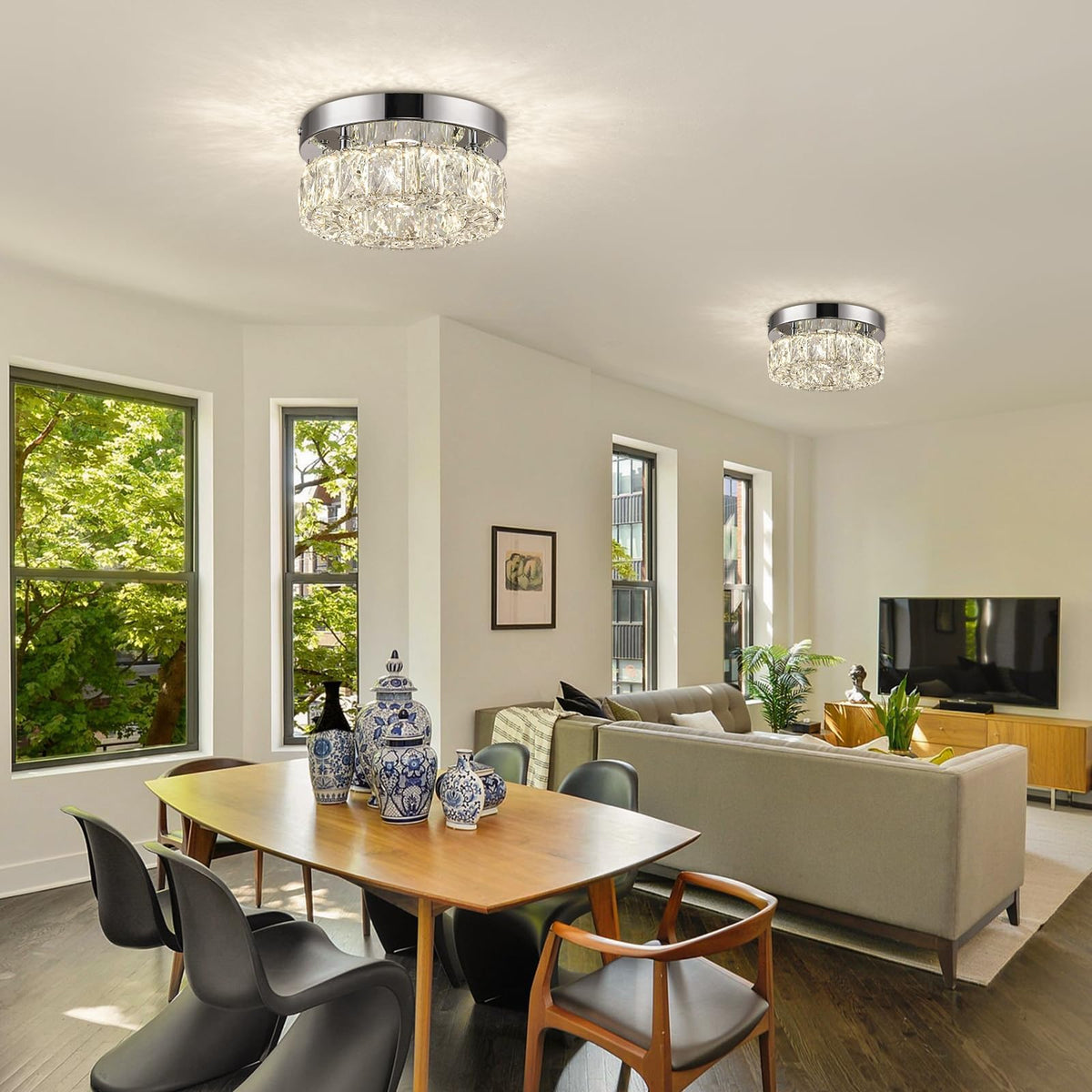 Leontyne 7.9 Inch Dimmable Modern Crystal Chandeliers Mini Led Ceiling Light Fixtures Stainless Steel Flush Mount Ceiling Chande