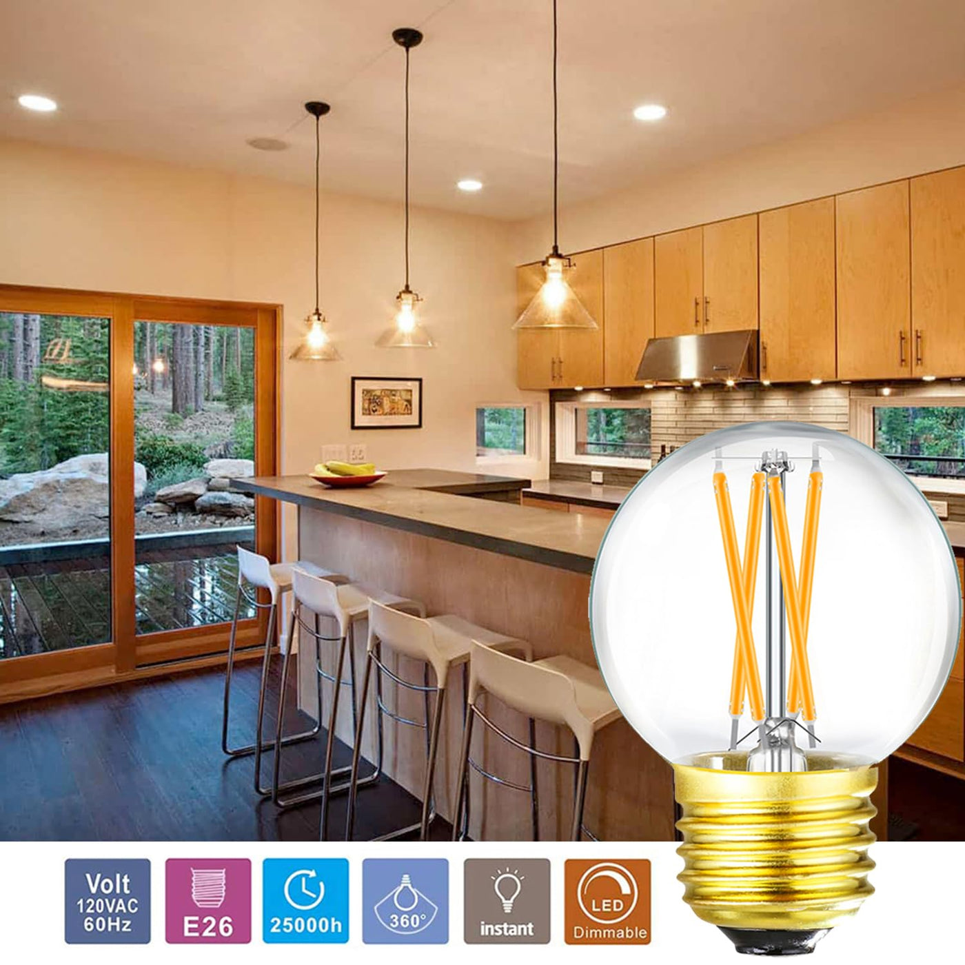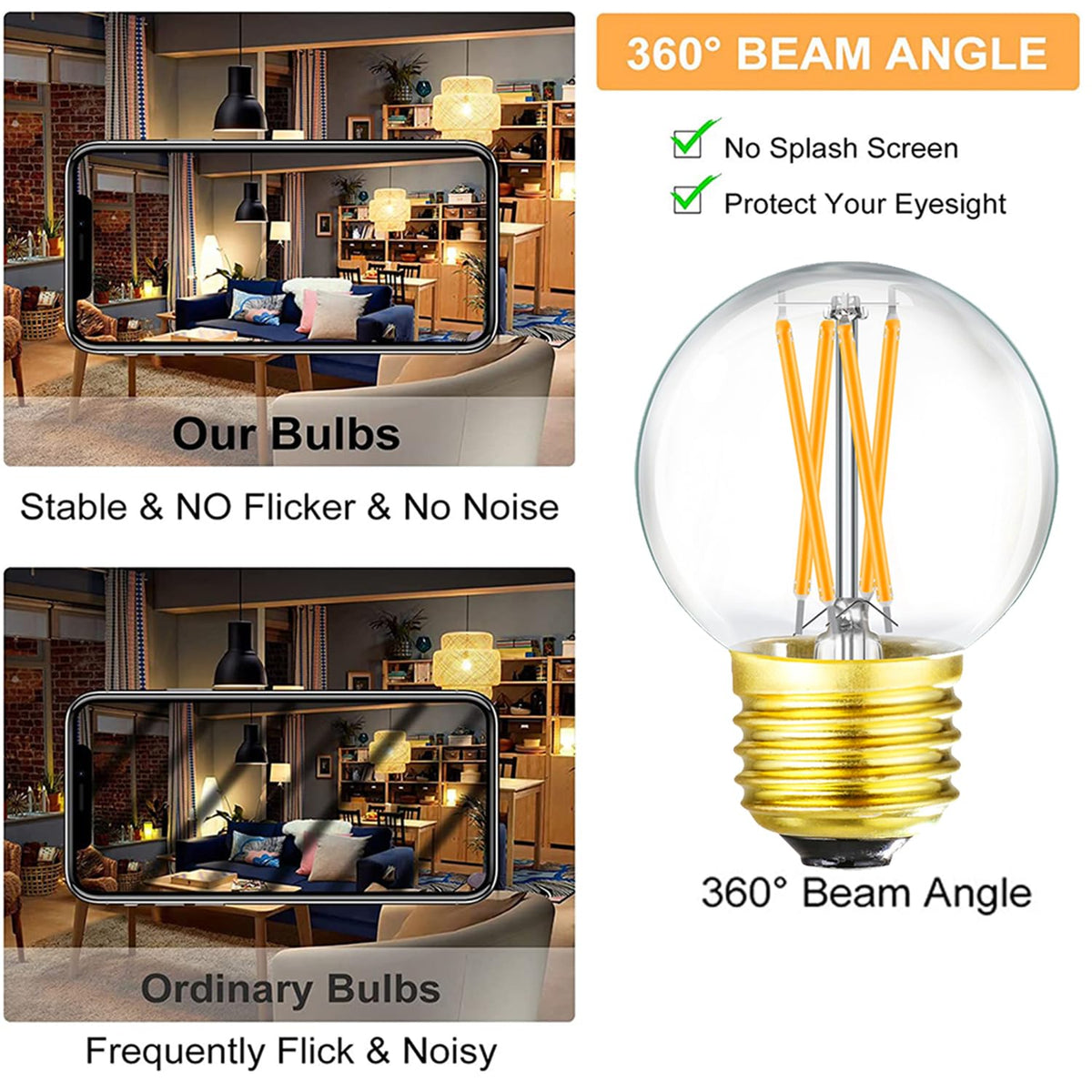 Leools e26 g16.5 led globe bulb offers comfortable,cozy,relaxing atmosphere;no-flicker or strobe warm white color protecting your family's eyesight;led edison bulb is extensively applied in Indoor and outdoor,Such as chandelier light bulbs,ceiling fan light bulbs,ceiling light bulbs,vanity light bulb,desk light bulb,Dining room light bulb,Bathroom light bulbs,reveal light bulbs,Bistro Bar Lighting,wall fixture,light fixture,accent fixture,Decoration,strings,etc. ?What separates us from the competitions?? ? Light up your space instantly, without any delay. ? CE, FCC and RoHS certified. ? Dimmable. Fully compatible with following models after test: LUTRON:DVG-603P/DV-600P/DVSC-600P/S-600/S-603P/S-603PNL LUTRON:MSCL-VP153M/AYCL-153P/AYCL-253P/MRF2-6CL/6674 LEVTTON:6602-220/C22-6672-1LW/6684/6681/SAL-06P SPECIFICATIONS: ? Wattage: 6W ? Socket: E26 ? Size:2.88*1.97*1.97inch ? Voltage: 120V AC ? Lumen output: 400LM ? Color temperature:2700K (Warm White) ? CRI: > 90+ ? Box included:6 x 4W Warm White LED Globe Bulb. Cautions: 1.Switch off the power before replace the lamp 2.Keep away from direct sunshine and too high temperature. 3.Indoor use only. 4.If any doubt about the installation or use of this product, please consult a competent electrician. 5.If you are not 100% satisfied with your purchase or there is any damage in transit we will make it right. We are committed to responding to any request within 12 hours.