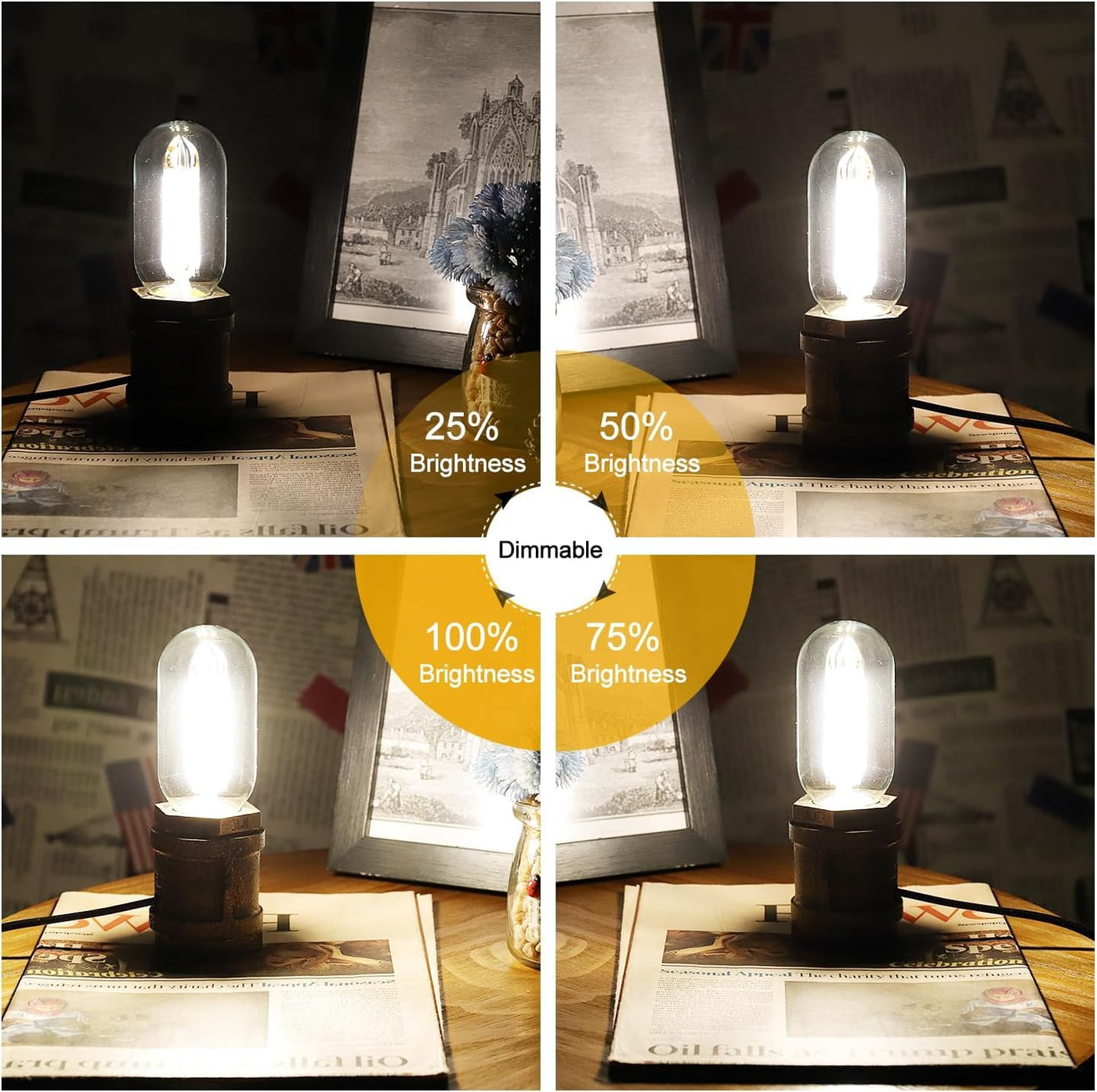 FIXTURE APPLIED - T45 e26 led bulb extensively applied for wall sconces, indoor or outdoor. Typically used for home or commercial decoration. Kitchen, living room, bedroom, bar, coffee shop, restaurant,dining room light bulbs,vanity light bulb,candle bulbs,rustic decoration,wall fixture,accent light fixture,glass fixture,wall sconce,exit sign,indoor and outdoor fixtures. Features: ?Dimmable:Smooth dimmable 0%-100% ? No flicker ? Instant On ? Non buzzing or non humming ? Globe bulb ? Color Rendering Index (CRI) 90+ SPECIFICATIONS : ?Wattage:8W ?Voltage: 120V AC ?Lumen output: 600LM ?Color temperature: 3000K ?Socket: E26 ?Size: 4.33in*1.78in*1.78in ?Package Included: 6 x 6W T14 Clear Edison Style LED Filament Bulb. Cautions : 1. Easy to install, just 3sec to screw in the Edison bulb, the E26 base fitting for most light fixtures 2. Switch off the power before replace the lamp. 3. Keep away from direct sunshine and too high temperature. 4. If any doubt about the installation or use of this product, please consult a competent electrician. 5. If you are not 100% satisfied with your purchase or there is any damage in transit we will make it right. We are committed to responding to any request within 12 hours.