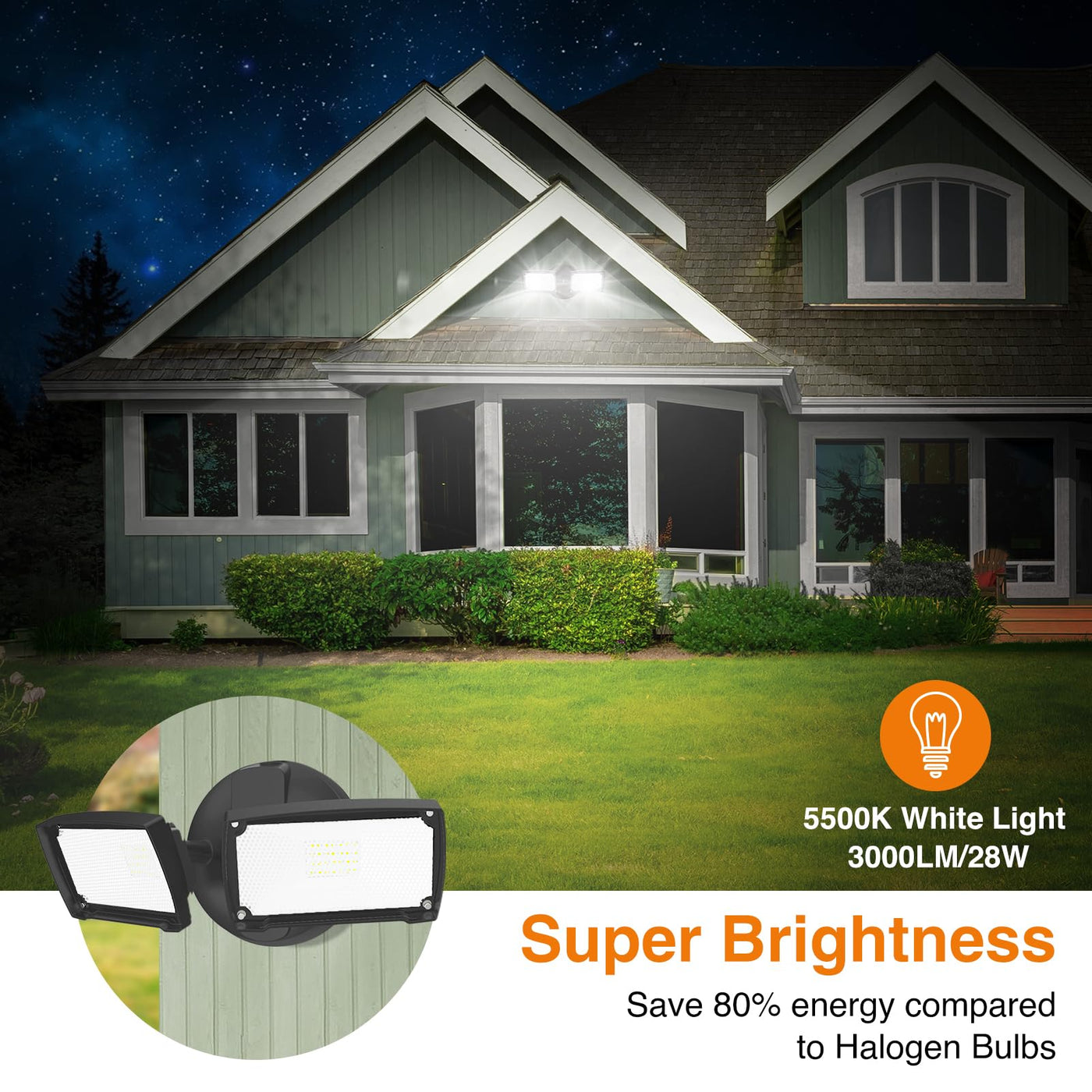 Lepower 3000Lm Led Flood Light, 28W Dual Head, Ip65 Waterproof, Outdoor Security Light, Black