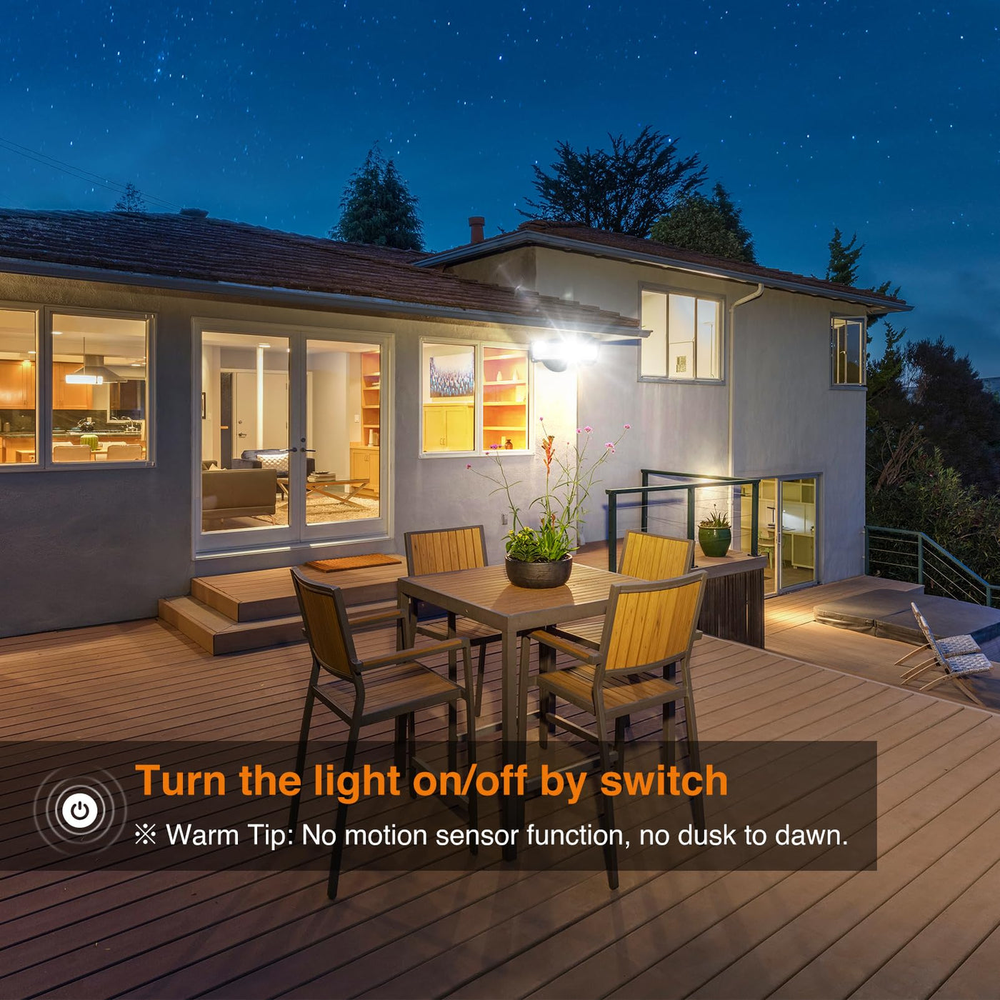 - **User-Friendly Switching Control:** Easily turn the flood lights on or off with a simple wall switch. Installation is straightforward, allowing for quick wall mounting with minimal wiring steps. The ETL certification ensures an added level of safety for your home.